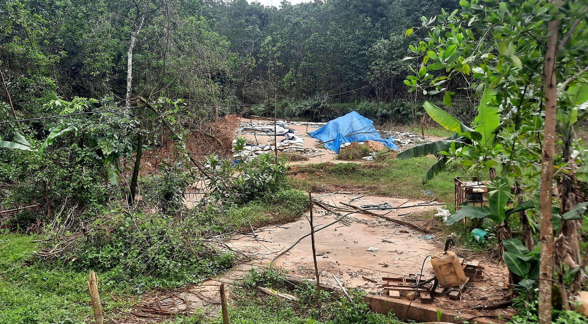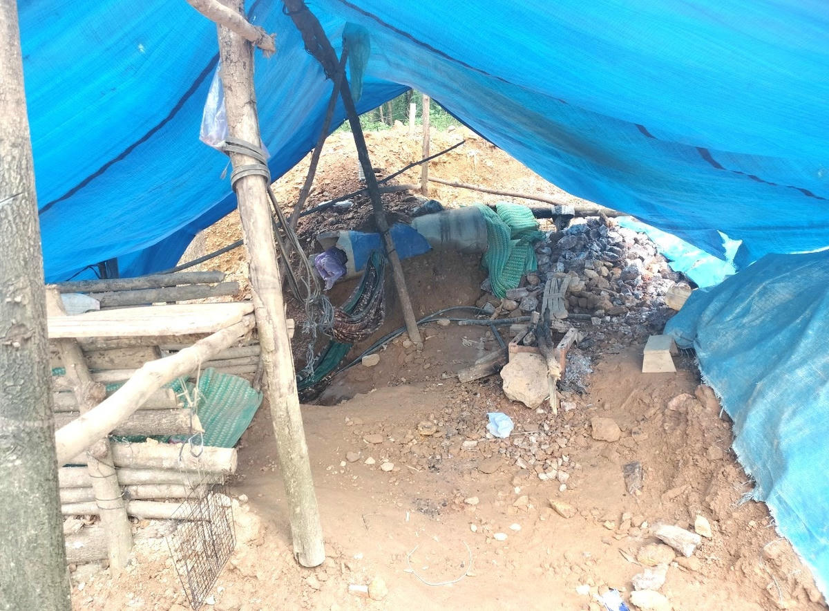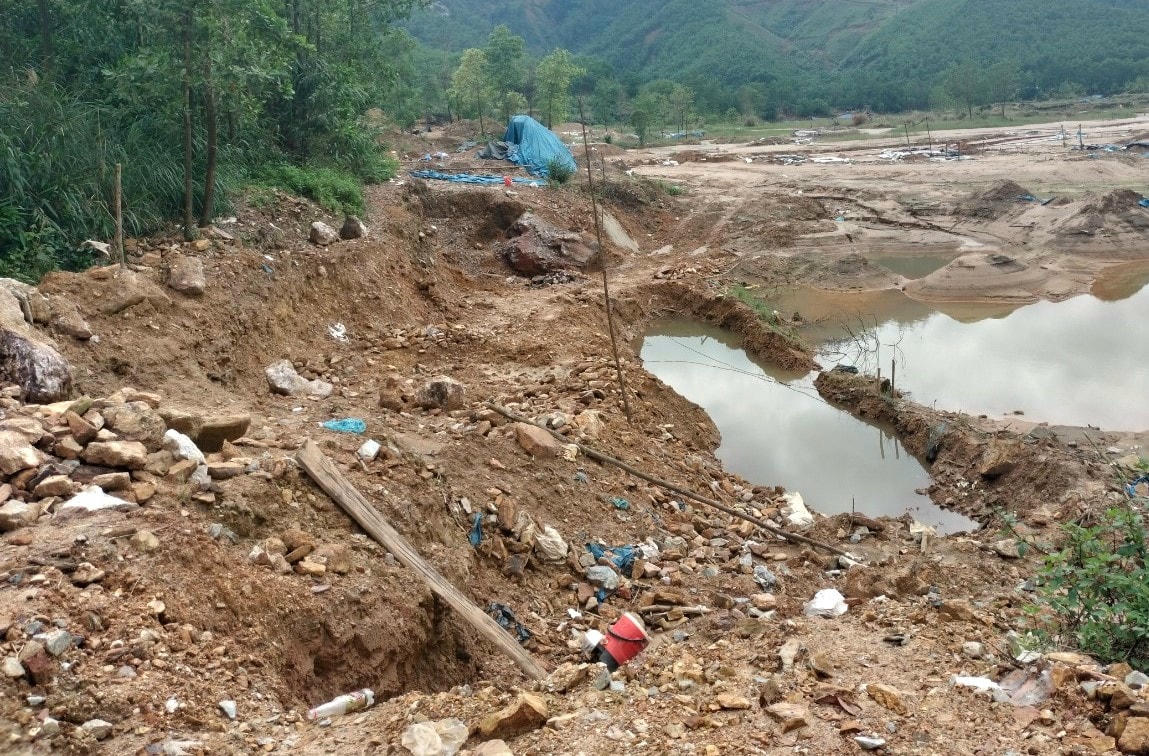 Sáng ngày 6/2, ghi nhận của chúng tôi tại bãi thải chứa quặng, đội Sim, thác Trắng… thuộc bãi vàng Bồng Miêu không có đối tượng khai thác vàng trái phép, tuy nhiên có nhiều lán trại, hầm hố được đào sâu bỏ nằm ngổn ngang. Vì vậy nguy cơ dễ xảy ra tình trạng sạt lở đất đá vào mùa mưa bão, đồng thời gây ra ô nhiễm môi trường xung quanh từ hóa chất ở các hầm hố xái quặng vẫn còn ở đây.