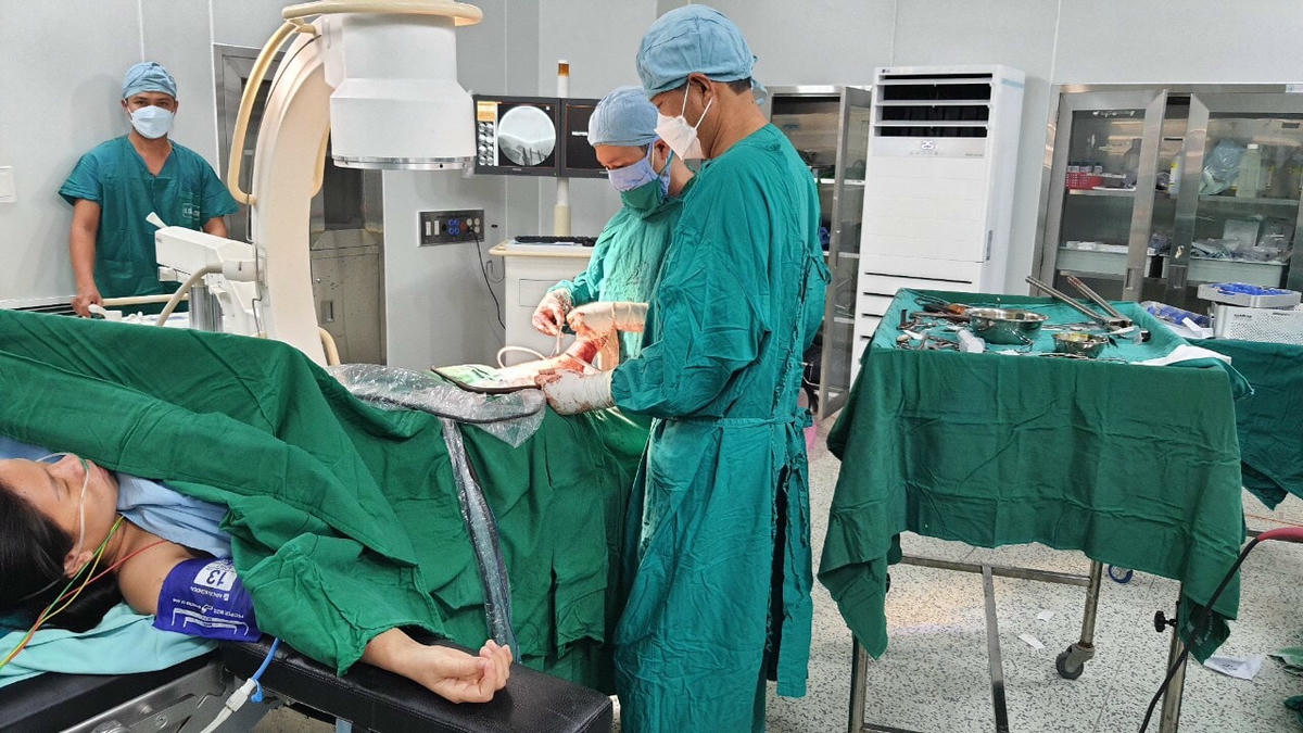 Đồng thời, các bác sĩ tiến hành gây mê sản phụ để mổ cấp cứu bắt con, đồng thời cắt lọc vết thương, đặt nẹp bột tạm thời cố định chân cho sản phụ. Sau gần 1 giờ phẫu thuật, bé trai nặng 2,9 kg chào đời sức khỏe ổn định.
