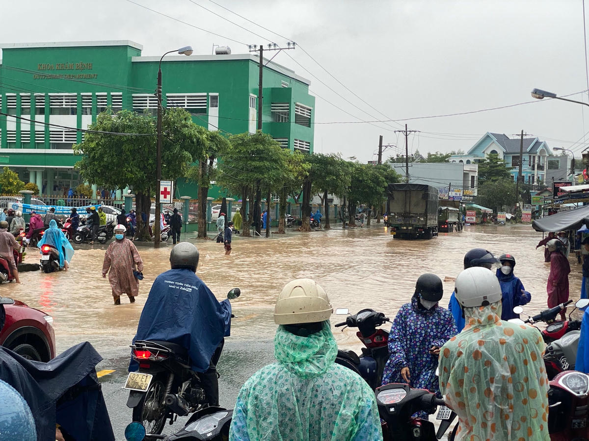 Ghi nhận thực tế của chúng tôi, lúc 9h sáng cùng ngày, mưa lớn khiến nhiều đoạn đường ở Trung tâm huyện Đại Lộc ngập nước sâu khoảng hơn 0,5m gây khó khăn trong việc đi lại của người dân. Ngoài ra tại tuyến, đường Quang Trung, trước Bệnh viện Đa khoa khu vực miền núi phía Bắc tỉnh Quảng Nam, huyện Đại Lộc cũng bị ngập nước sâu.