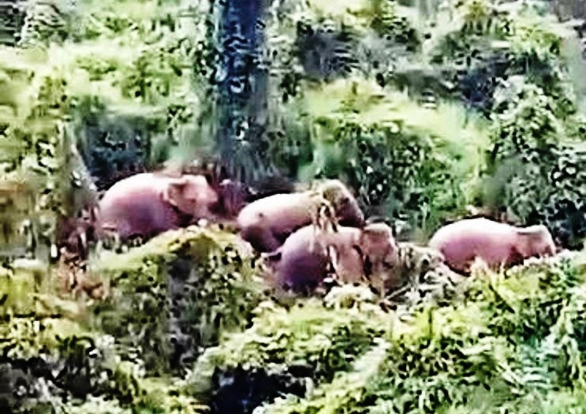 5 cá thể voi xuất hiện ở xã Quế Lâm.