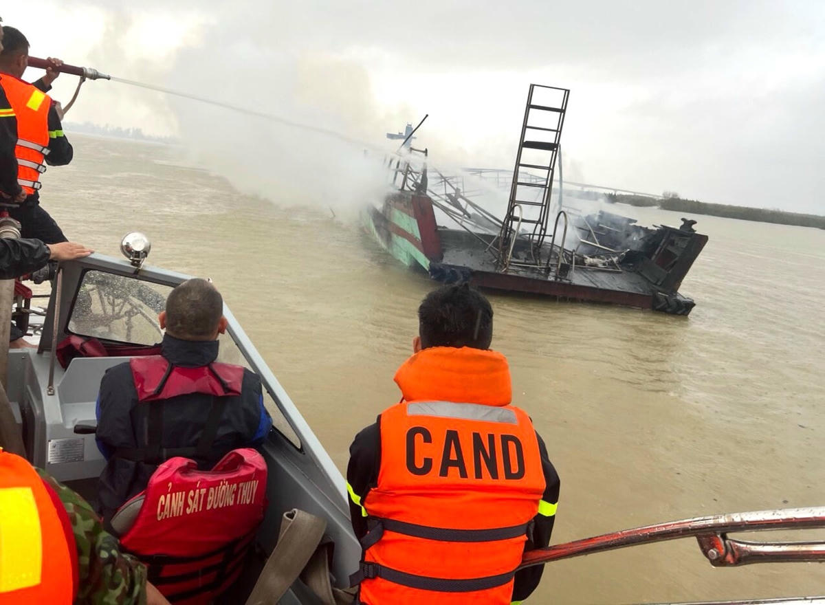 “Hiện lực lượng Công an đang phối hợp với Bộ đội Biên phòng tỉnh và các lực lượng chức năng khác lai dắt các phương tiện bị cháy trôi ra biển vào bờ nhằm không để các phương tiện này bị chìm. Việc bị chìm sẽ gây khó khăn cho việc khắc phục hậu quả cũng như xác định nguyên nhân cháy. Rất may, vụ cháy không gây thiệt hại về người”, Thiếu tướng Nguyễn Đức Dũng thông tin.
