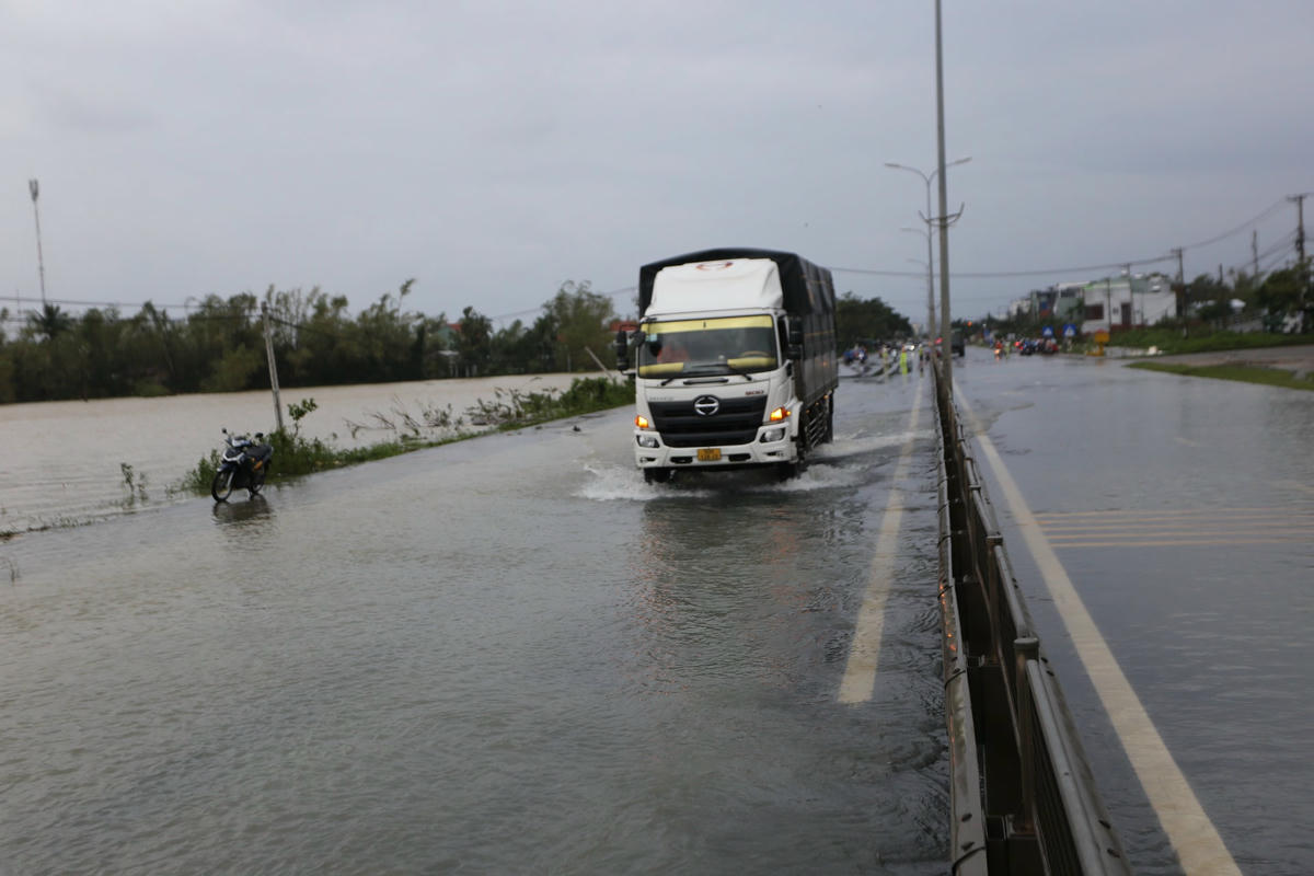 Mưa lớn kéo dài từ ngày 9/10 đến ngày 11//10, khiến nhiều đoạn quốc lộ 1A, đoạn qua huyện Phú Ninh và huyện Thăng Bình, tỉnh Quảng Nam ngập sâu, nhiều phương tiện lưu thông khó khăn.
