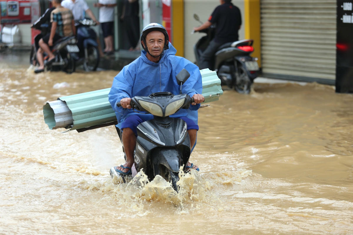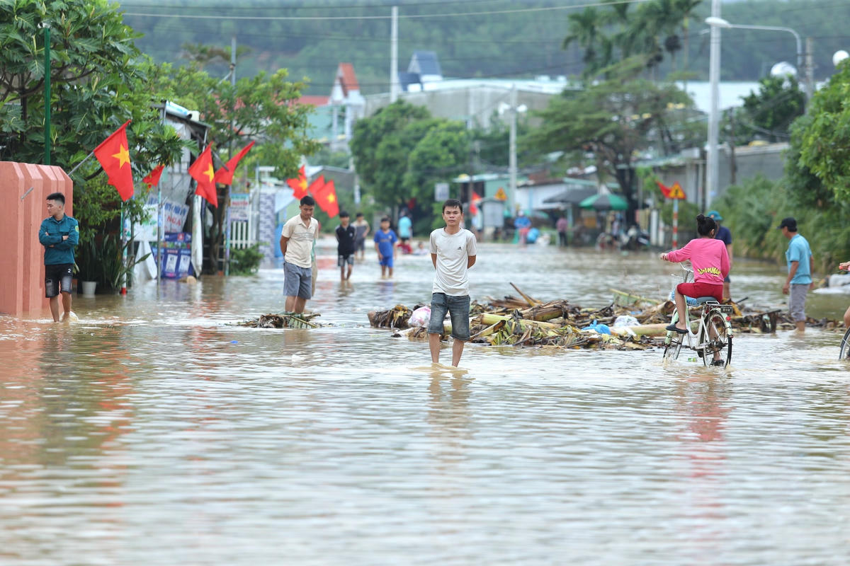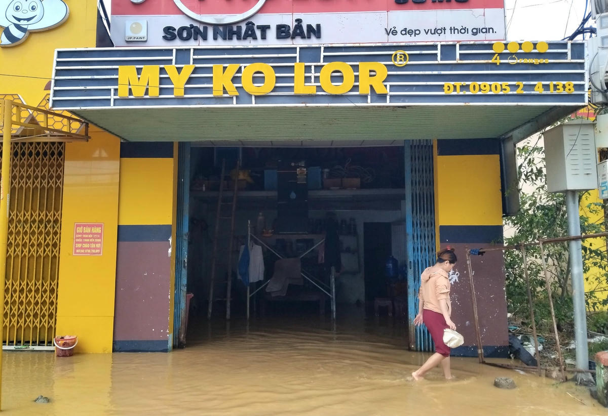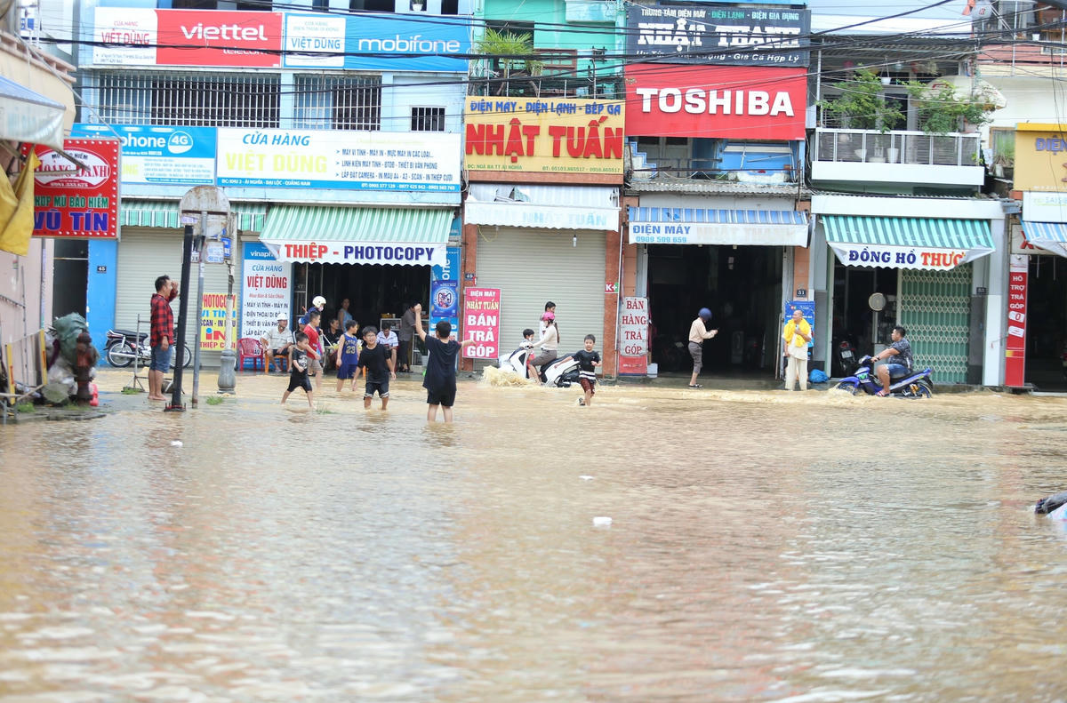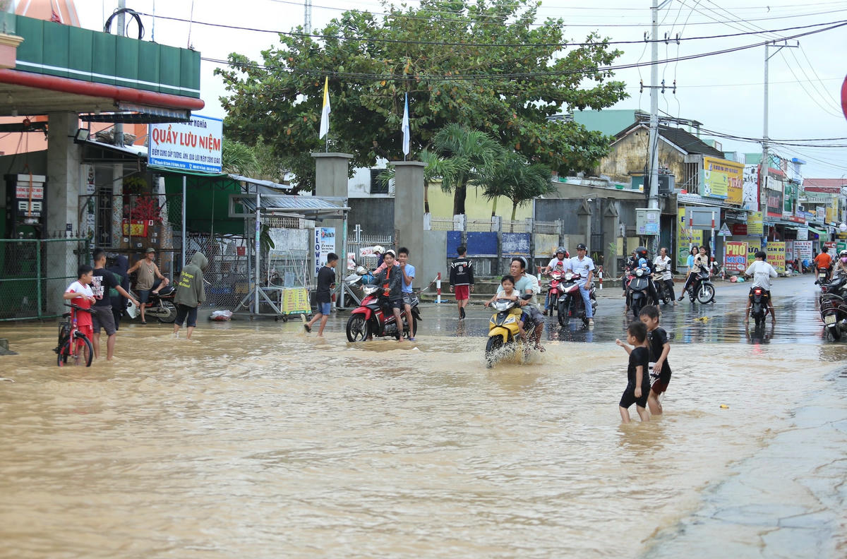 Tại tuyến đường Huỳnh Ngọc Huệ, Nguyễn Tất Thành;… thị trấn Ái Nghĩa nước ngập trên 0,5 m, hàng trăm nhà ở của người dân bị ngập sâu từ 0,3 đến 1 m.