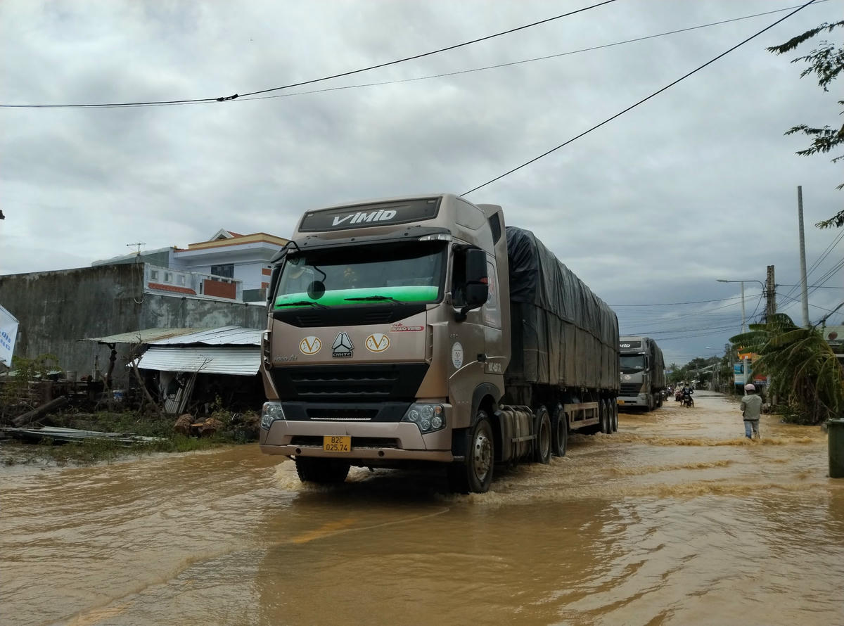 Theo ghi nhận của chúng tôi, sáng 15/10, tại khu vực ngã ba Ái Nghĩa, huyện Đại Lộc nước lũ lên nhanh, toàn bộ tuyến đường này bị ngập sâu trong nước, nhiều đoạn ngập sâu đến hơn 50 cm, làm các phương tiện giao thông đi lại khó khăn.