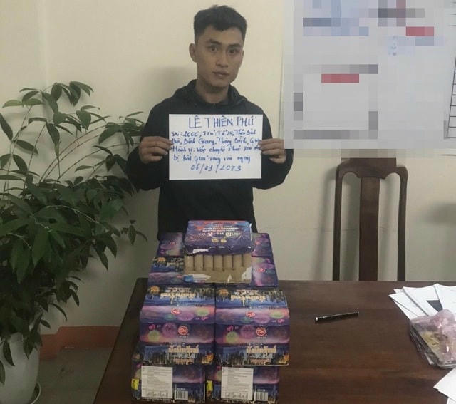 Trước đó, lúc 18h30 ngày 6/1, trên quốc lộ 14E, đoạn qua khu vực xã Bình Triều, huyện Thăng Bình, tỉnh Quảng Nam, tổ công tác của phòng Cảnh sát hình sự Công an tỉnh đã tiến hành kiểm tra, bắt quả tang đối tượng Lê Thiện Phú (23 tuổi) và Nguyễn Đình Lê Hiếu (27 tuổi), cả 2 cùng trú huyện Thăng Bình đang vận chuyển 13 hộp pháo nổ với khối lượng hơn 22kg trên xe ô tô BKS: 92A - 228.33.