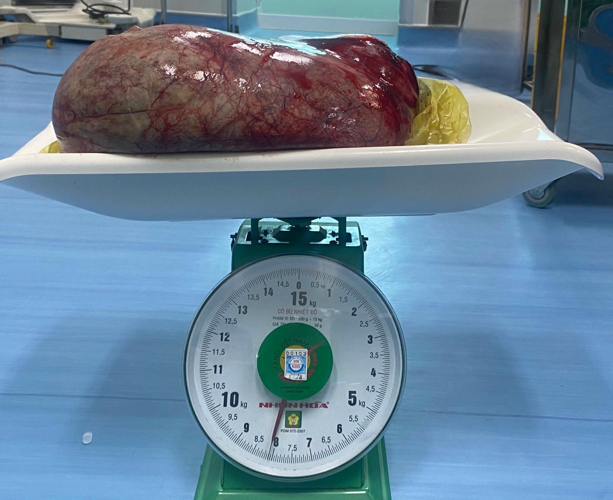Ngay sau đó, các y, bác sĩ của bệnh viện đã tiến hành phẫu thuật cắt bỏ khối u to nặng 8,1kg cho bệnh nhân thành công. Sau phẫu thuật sức khoẻ bệnh nhân Đ. ổn định.