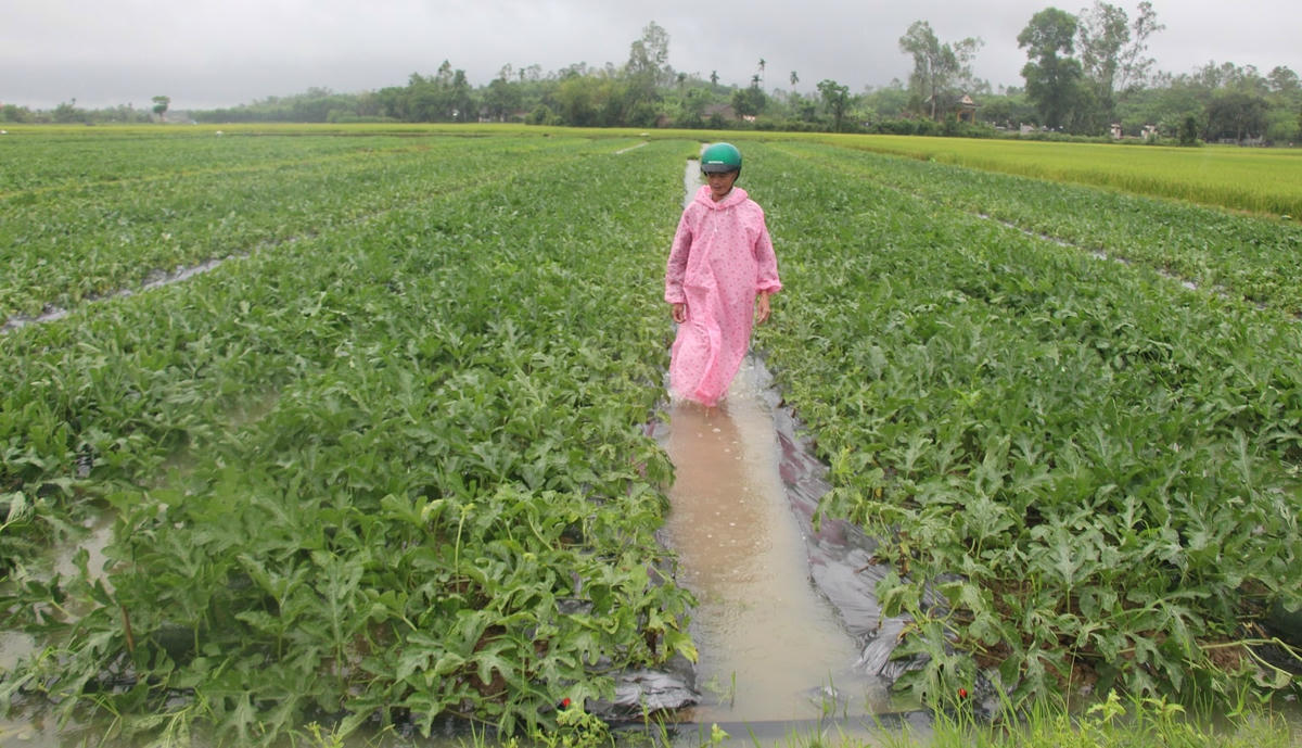 Sáng 1/4, tại một số cánh đồng huyện Thăng Bình, Núi Thành, tỉnh Quảng Nam mưa lớn đã làm khiến nhiều diện tích hoa màu như: lúa, rau màu, dưa hấu, đậu phộng của người dân bị ngập nước. Nhiều người dân đã đem máy bơm hút nước để cứu rau màu.