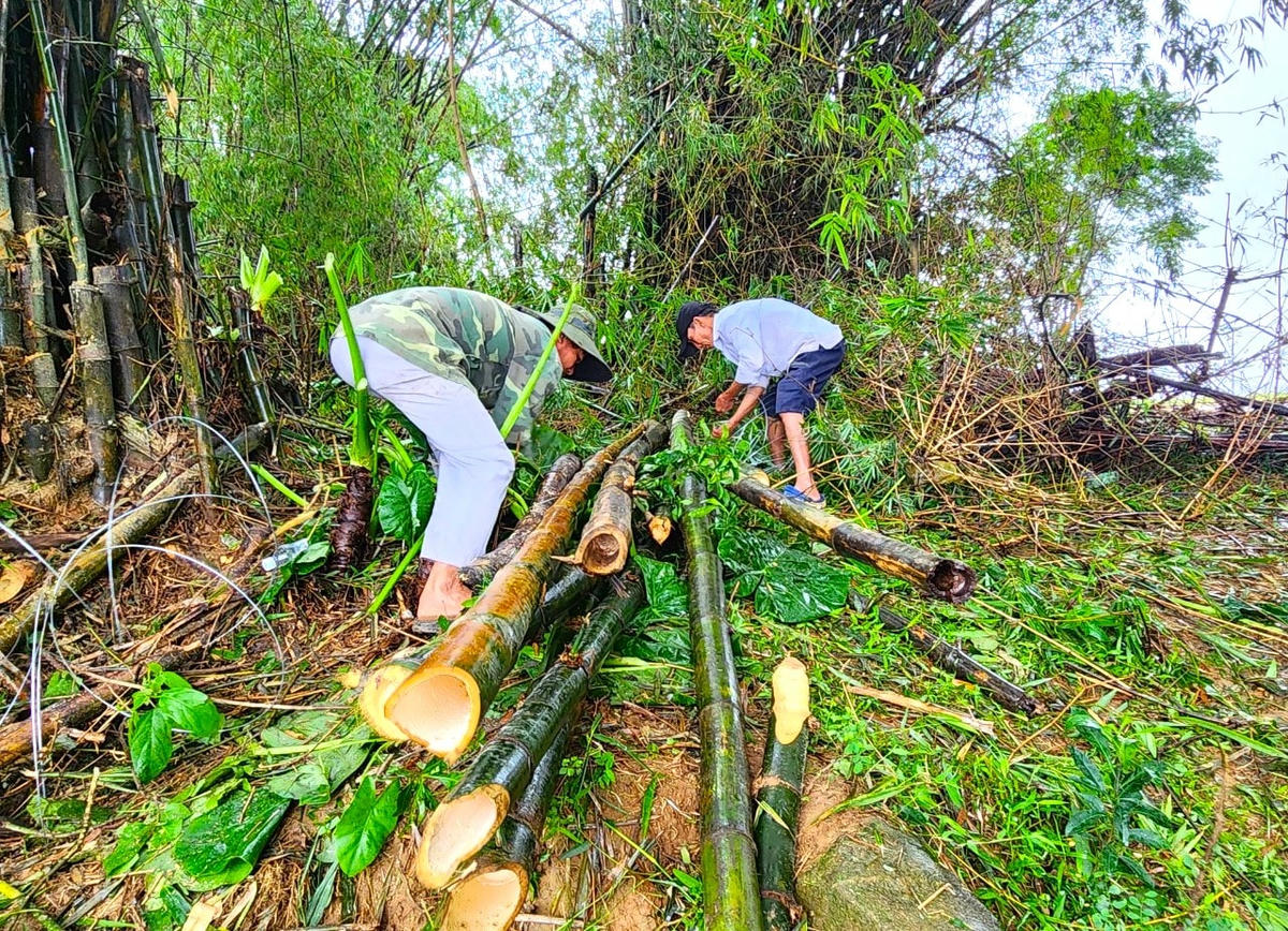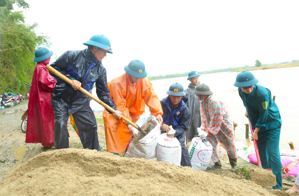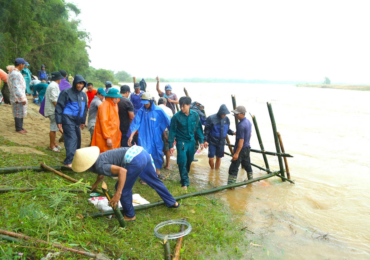 Ngay sau đó chính quyền địa phương đã huy động gần 200 người gồm: công an, dân quân tự vệ và người dân địa phương tham gia đóng bao tải cát, đóng cọc tre làm kè để gia cố vị trí sạt lở.