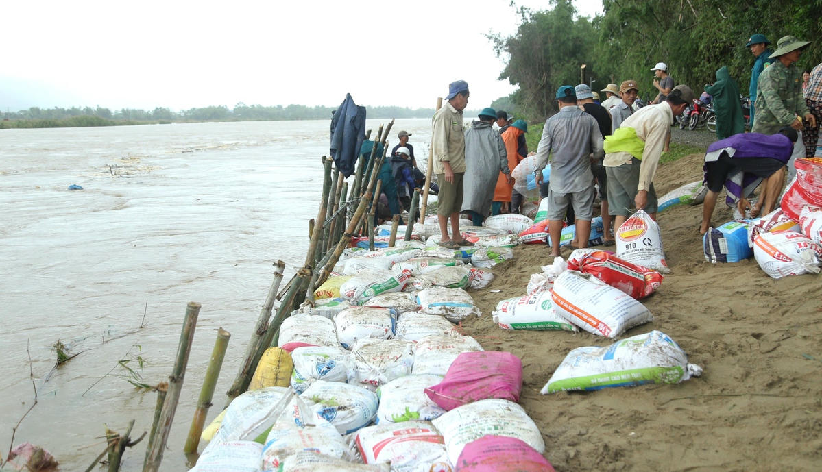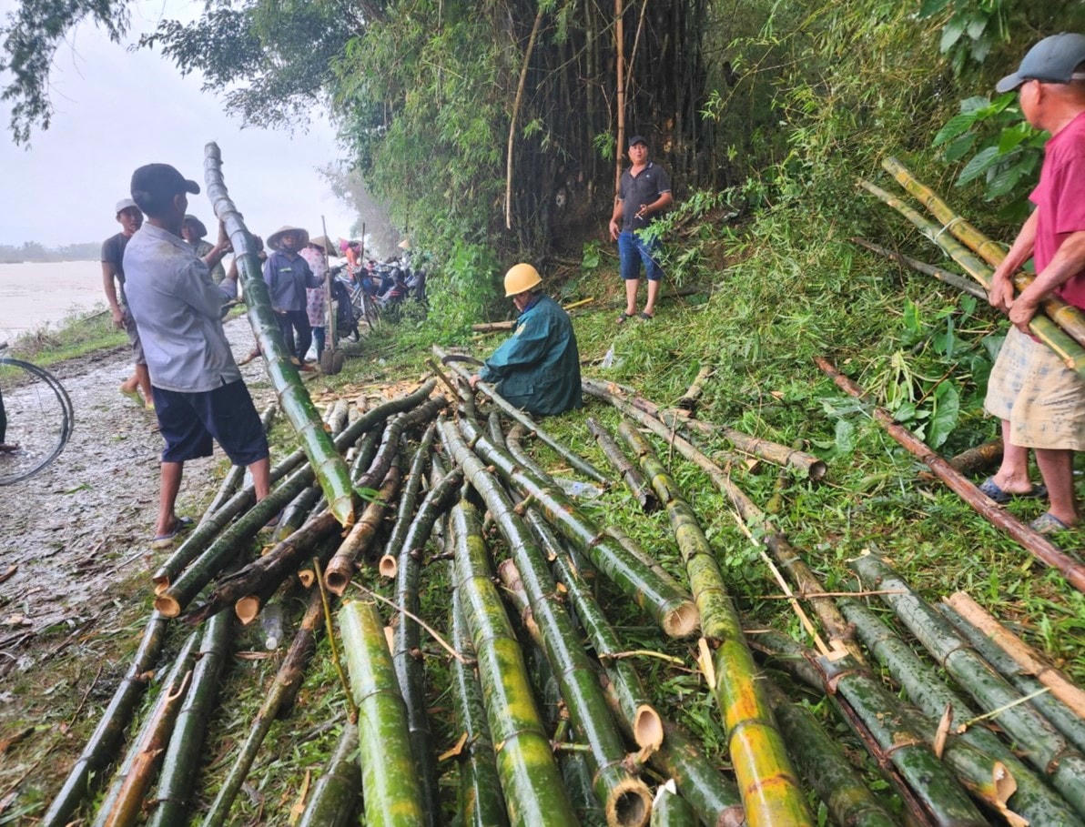 Quảng Nam: Sạt lở bờ sông Vu Gia, người dân dùng cọc tre, bao cát gia cố