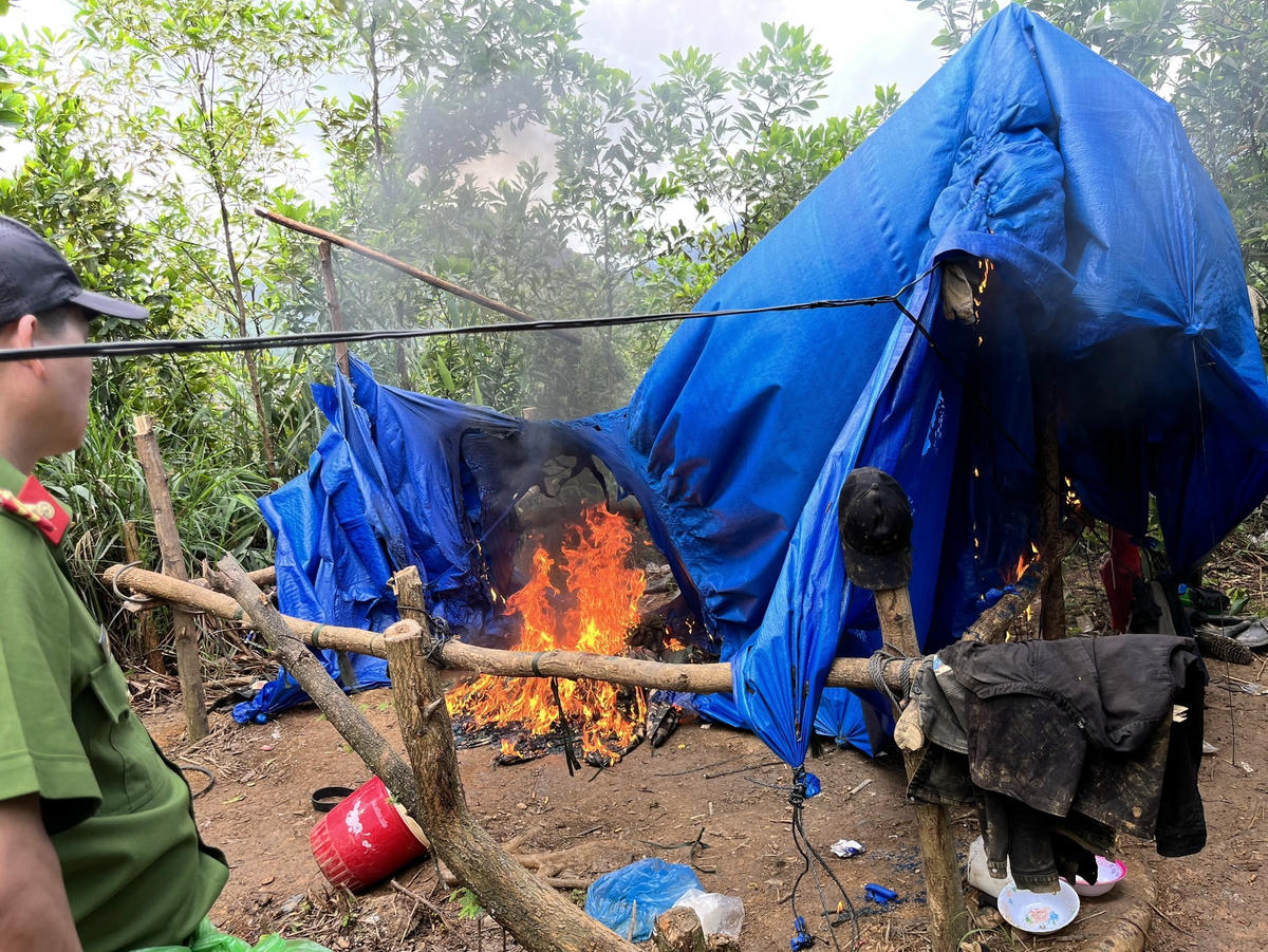 Tại hiện trường, phát hiện nhiều lán trại, hầm lò phục vụ khai thác vàng trái phép. Lực lượng chức năng đã phá hủy 7 máy nổ, 1 máy nén khí, 9 cối xay đá, hàng chục xe rùa, hồ ngâm ủ, hơn 5.000 m ống dây nước, hơn 1.500 m dây điện, tiêu hủy 17 lán trại phục vụ khai thác vàng cùng nhiều dụng cụ khác.