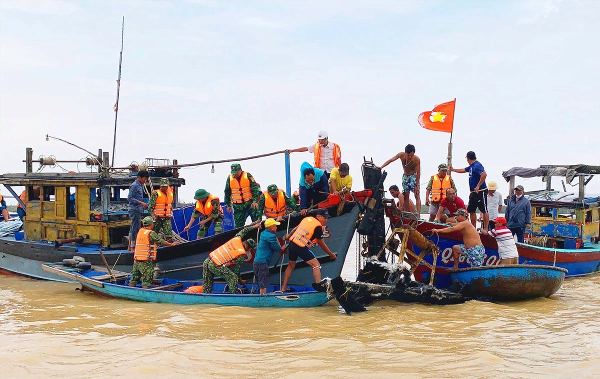 Theo đó, Đồn biên phòng Cửa Đại đã cử 37 cán bộ, chiến sĩ cùng 2 ca nô phối hợp với lực lượng công an, dân quân và ngư dân có kinh nghiệm và huy động 6 tàu cá của ngư dân để trục vớt và lai dắt các phương tiện bị nạn vào bờ. Tối 11/10 các lực lượng chức năng đã kéo tàu bị cháy mang số hiệu QNa 0582 của Công ty Lặn Biển vào bờ.