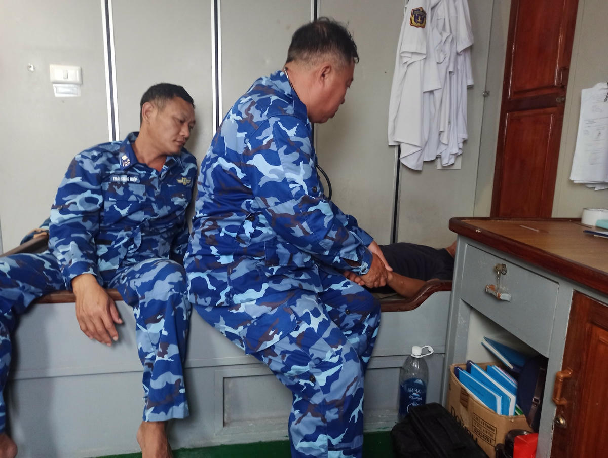 Trước đó, BTL Cảnh sát biển Vùng 2 nhận được thông tin tàu cá QB 98084 TS bị phá nước khi đang khai thác hải sản cách đảo Lý Sơn, tỉnh Quảng Ngãi khoảng 60 hải lý và điều tàu CSB 2014 đi ứng cứu.