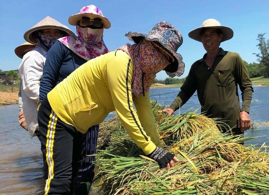 Chị Cao Thị Kim Đoàn - Chủ tịch Hội LHPN xã Đức Minh cho biết, những ngày qua mưa lớn, diện tích lúa vụ Hè Thu của của bà con bị ngập sâu trong nước, để góp phần giảm thiểu thiệt hại cán bộ hội viên phụ nữ đã chung tay cùng các hội, đoàn thể, Công an, Bộ đội biên phòng gặt lúa giúp người dân.