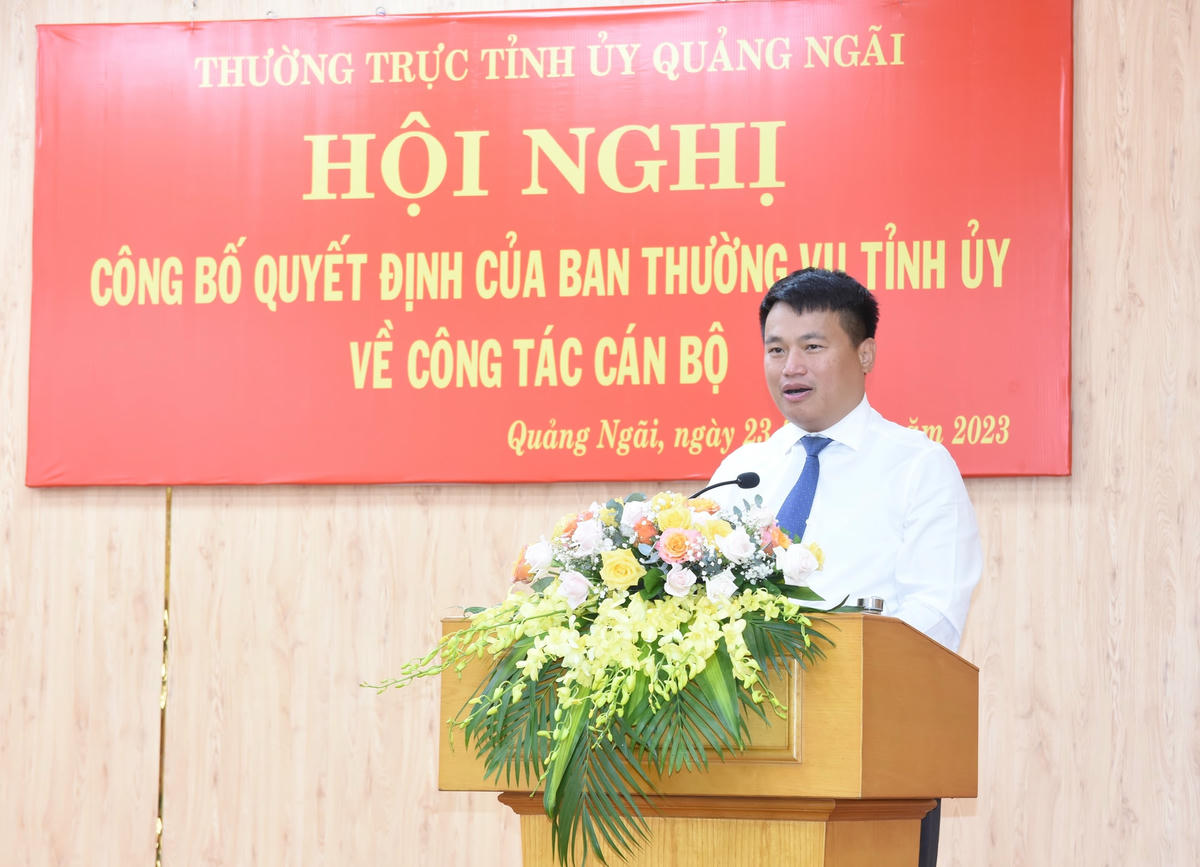 Cũng tại Hội nghị, ông Đặng Ngọc Huy, Phó Bí thư Thường trực Tỉnh ủy Quảng Ngãi trao quyết định và chúc mừng 7 Tỉnh ủy viên được Ban Thường vụ Tỉnh ủy phân công nhiệm vụ mới. Mong muốn các lãnh đạo được điều động, luân chuyển nỗ lực học hỏi, rèn luyện, phát huy trí tuệ và những kinh nghiệm đã đúc rút được từ thực tế cùng tập thể lãnh đạo cơ quan, đơn vị, địa phương mới tiếp tục xây dựng khối đoàn kết, thống nhất, hoàn.