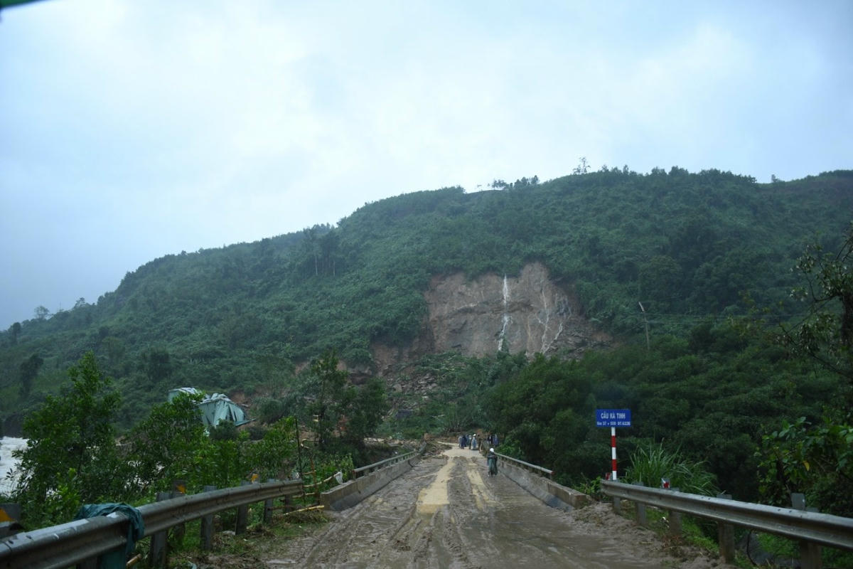 Theo đó, tối 10/10, tại khu vực cầu Kà Tinh, Km37 + 559, tỉnh lộ 622B thuộc xã Trà Lâm, huyện Trà Bồng đã xảy ra sạt lở núi gây ách tắc giao thông, làm sụp Nhà máy Thủy điện Kà Tinh 1, hiện tại một công nhân trực tổ máy bị mất liên lạc. Ngoài ra, đất đá từ trên núi đổ xuống vùi lấp một khu vực rộng lớn, gây ách tắc giao thông. Hiện tại ô tô xe máy không thể qua lại được. Từ tối qua, huyện Trà Bồng đã giăng dây cấm phương tiện qua lại khu vực sạt lở.