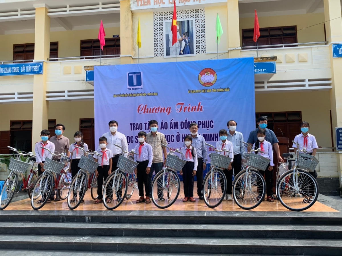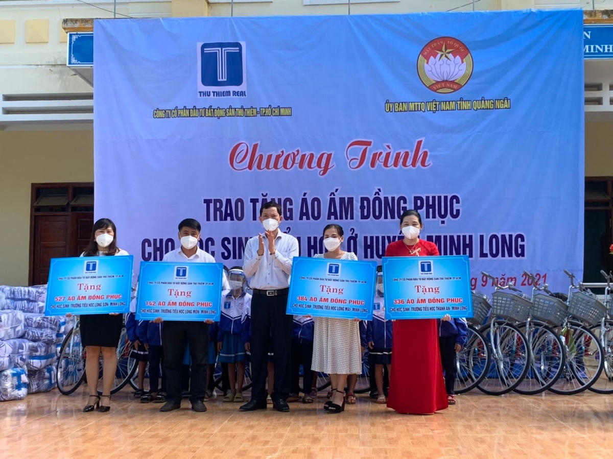 Đoàn đã trao 1.389 áo ấm cho các em học sinh ở Trường Tiểu học: Thanh An, Long Mai, Long Sơn, Long Môn. Trao 15 xe đạp cho 15 học sinh trường THCS ở Minh Long. Tổng các phần quà trị giá hàng trăm triệu đồng do Công ty CP Đầu tư bất động sản Thủ Thiêm - TP.Hồ Chí Minh. Đây là những món quà ý nghĩa, nhằm tiếp sức cho các em học sinh có thêm động lực để nỗ lực vươn lên, đạt thành tích cao trong học tập.