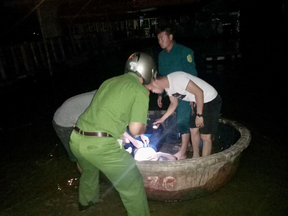Tiếp nhận thông tin, Công an xã phối hợp cùng Bộ Chỉ huy Quân sự xã Bình Đông đến hiện trường cùng người dân địa phương huy động thuyền thúng chèo ra cứu vớt đưa anh B. vào bờ an toàn. Tiếp đến anh B. được người dân đưa đi cấp cứu Bệnh viện đa khoa Trung ương Quảng Nam. Hiện tại anh B. đã qua cơn nguy kịch.