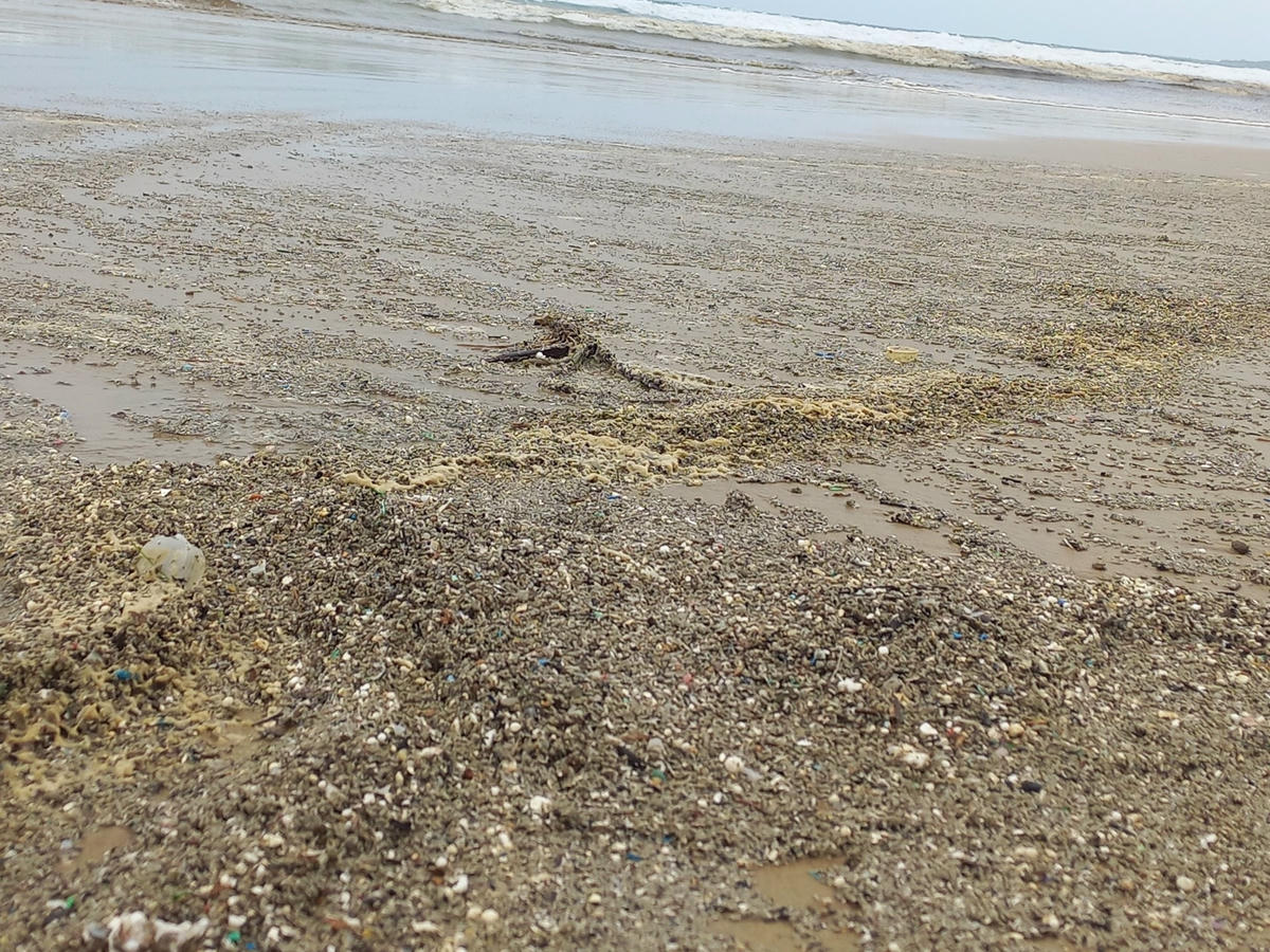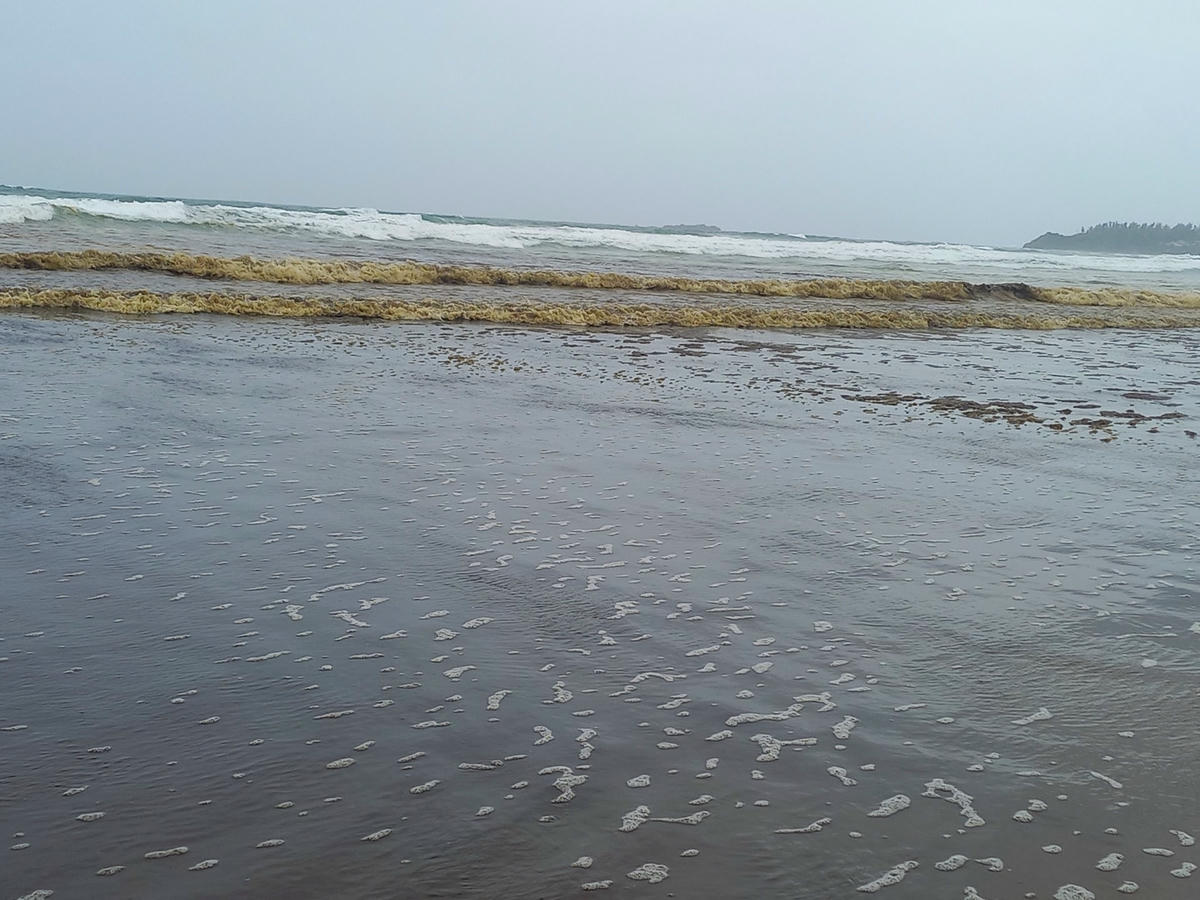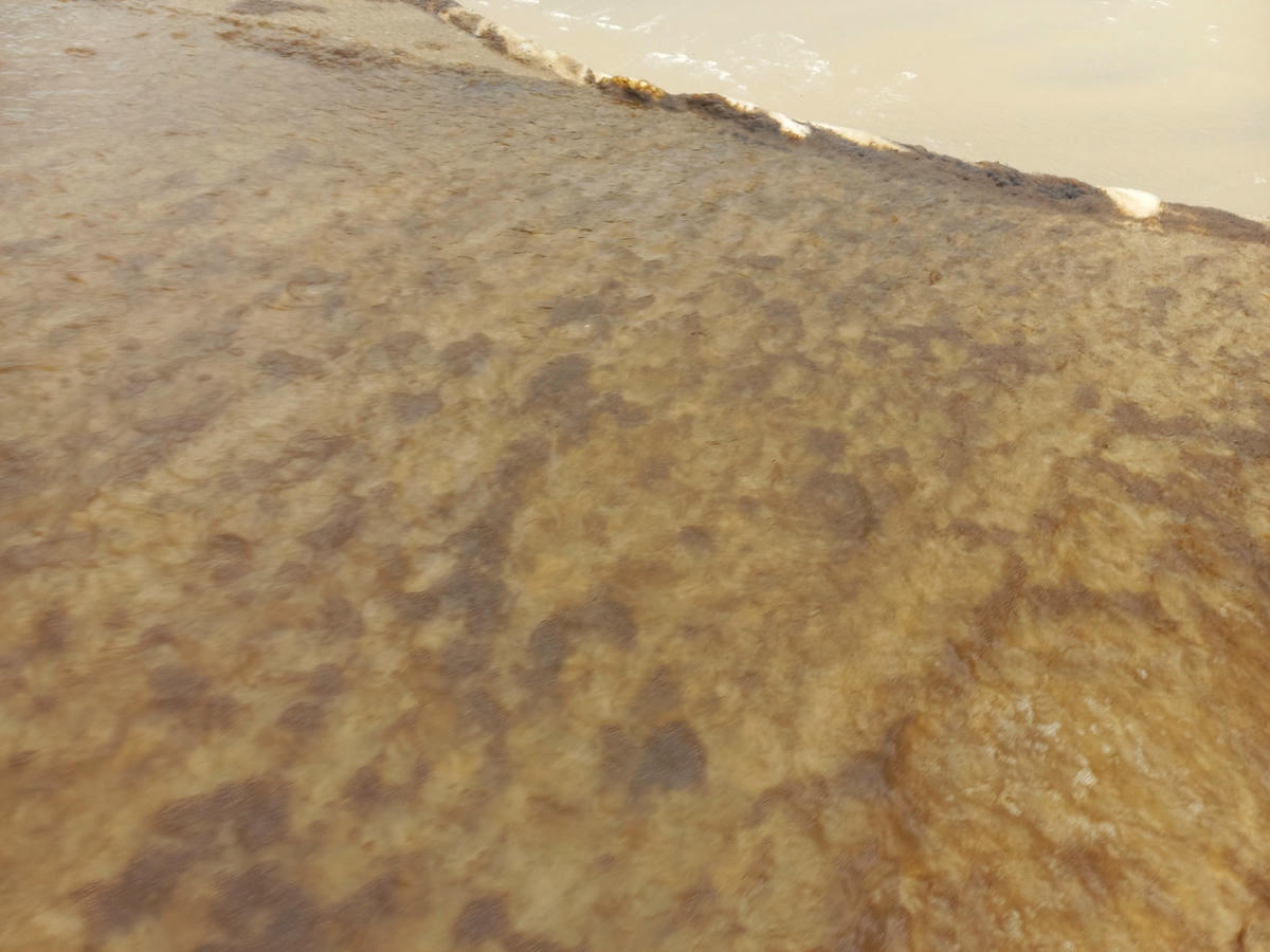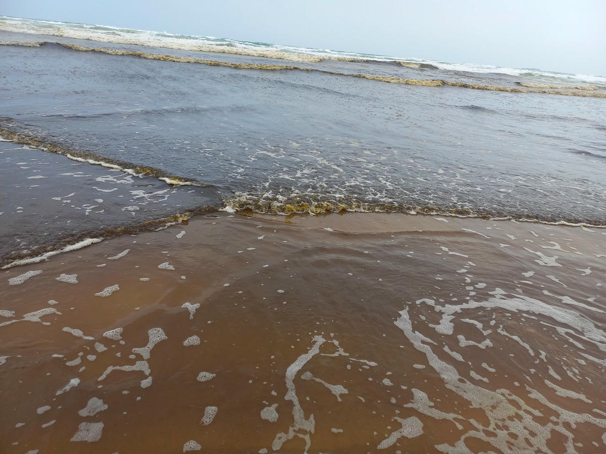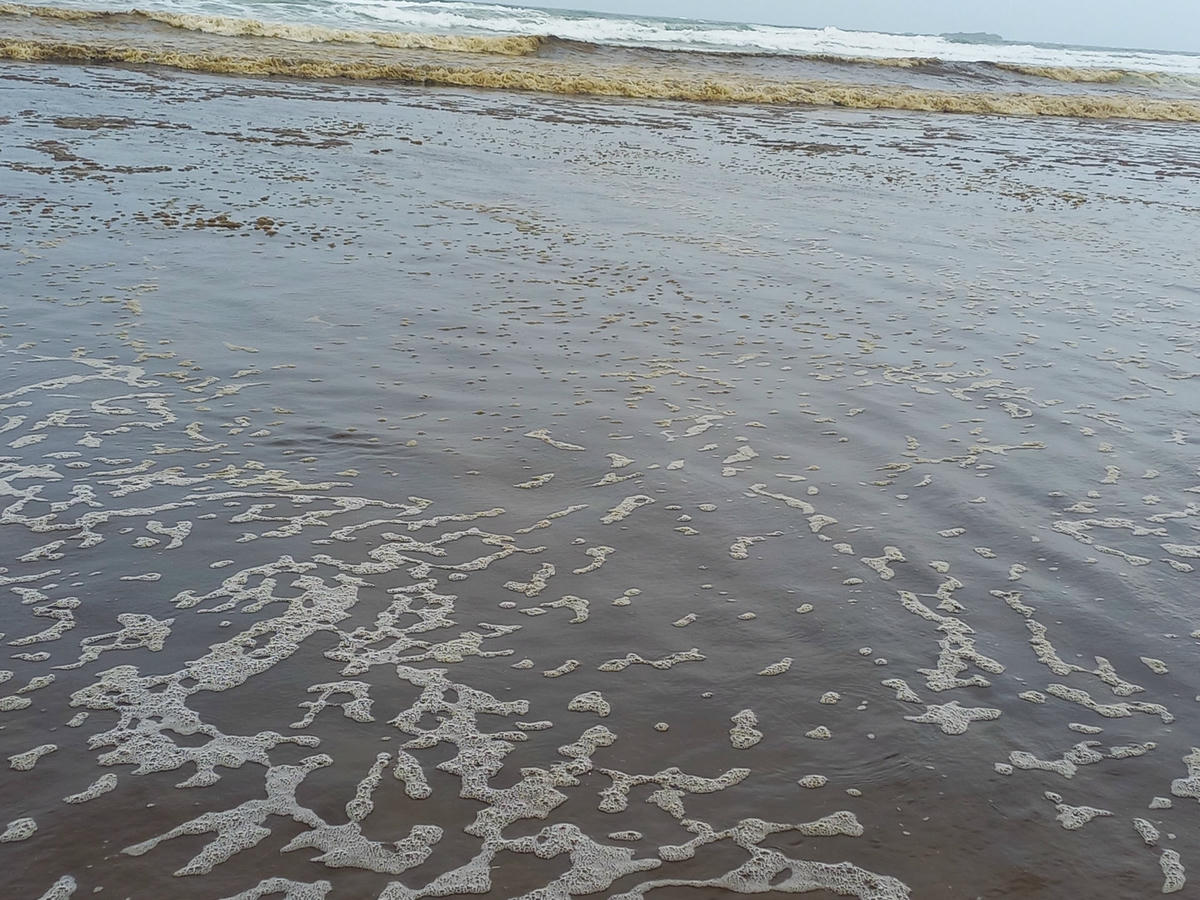 Chiều cùng ngày, ghi nhận thực tế của PV, dọc đoạn bờ biển qua xóm Châu Tân hơn 700 m, nước biển đổi màu nâu đen, đục ngầu bất thường và trên mặt nước xuất hiện bọt dày đặc. Đặc biệt, việc nước biển đổi màu chỉ xuất hiện khi sóng đánh cách bờ 100 đến 200 m. Còn khu vực phía xa cách bờ từ 300 m trở ra, nước biển vẫn trong xanh bình thường.