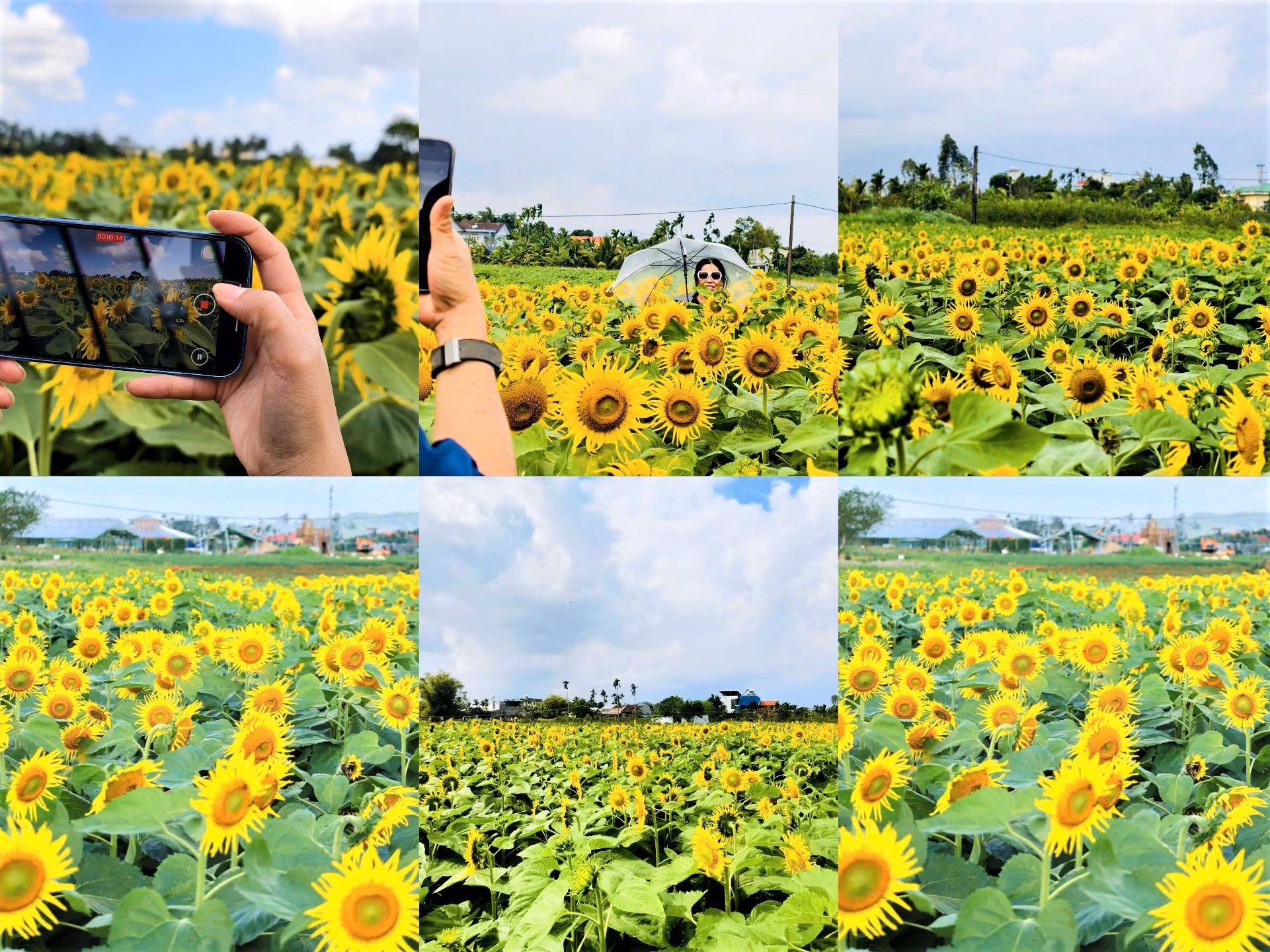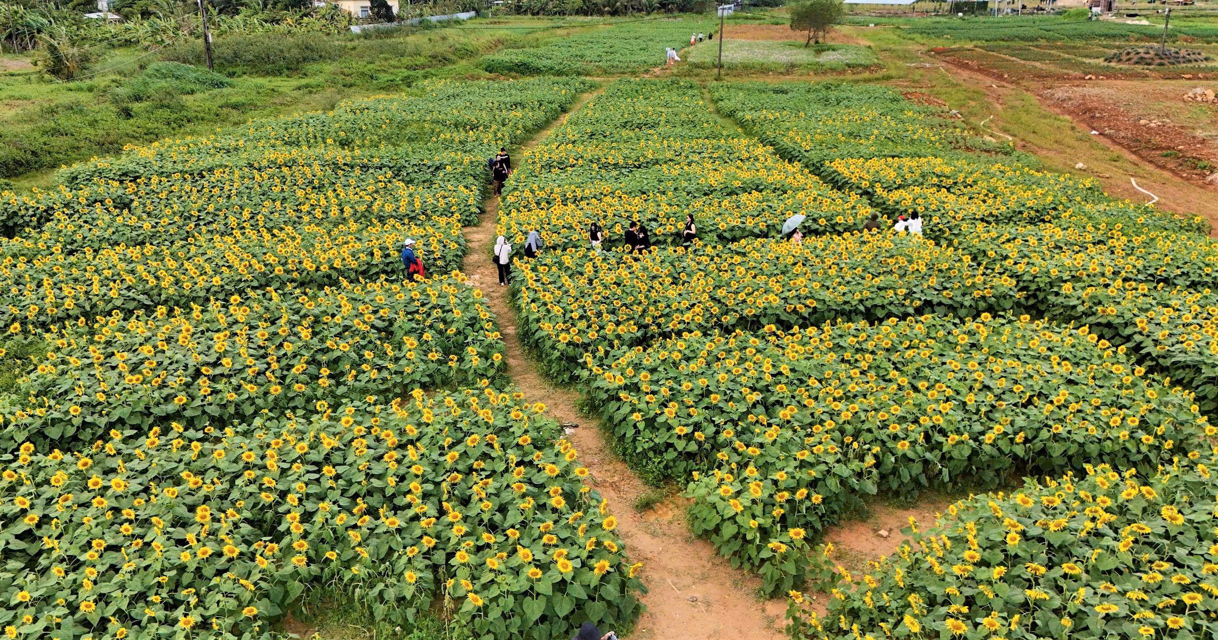 Từ sáng sớm đến chiều muộn, trên những lối đi giữa cánh đồng hoa hướng dương vàng rực rỡ, từng nhóm người dạo bước, hít thở bầu không khí trong lành và tận hưởng bầu không khí trong lành và yên bình.