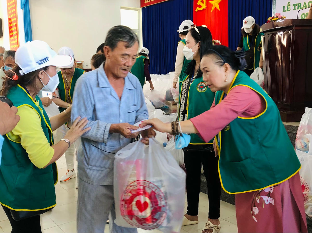Theo đó, Đoàn công tác trên đã trao 500 suất quà cho người khuyết tật trên địa bàn huyện Mộ Đức, tỉnh Quảng Ngãi bị ảnh hưởng bão lụt vừa qua, mỗi suất quà trị giá 800 ngàn đồng, trong đó gồm 100 ngàn đồng tiền mặt và các nhu yếu phẩm như: gạo, mì tôm, mắm, với tổng giá trị hỗ trợ là 400 triệu đồng.