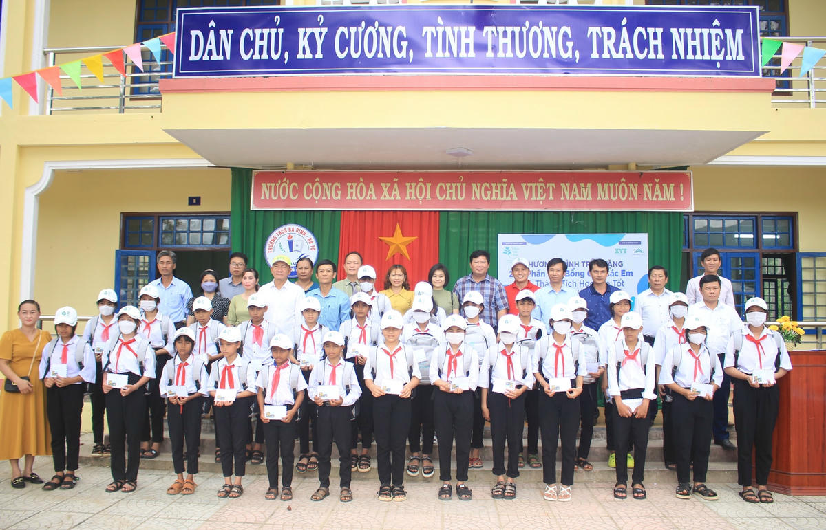 Theo đó, đoàn công tác trên đã trao tặng 250 suất học bổng tại 5 trường học trên địa bàn huyện Ba Tơ gồm: Trường THCS Ba Vì, Trường THCS Ba Tô, Trường Tiểu học Ba Tô, Trường THCS Ba Dinh - Ba Tô, Trường THCS thị trấn Ba Tơ, mỗi điểm trường được trao 50 suất học bổng (mỗi suất trị giá 1 triệu đồng gồm balo, mũ, bình nước và 500 nghìn tiền mặt) cho các em học sinh thuộc diện hộ nghèo, có hoàn cảnh đặc biệt khó khăn đạt thành tích học tập tốt năm 2021 - 2022, với tổng kinh phí đợt trao học bổng là 250 triệu đồng.