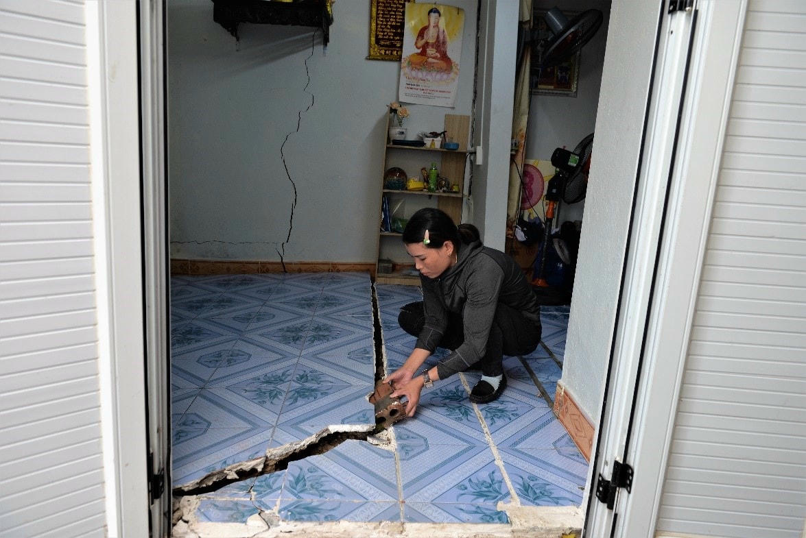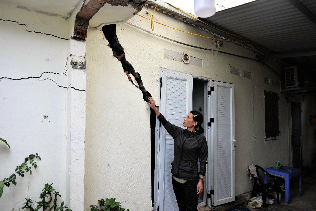Đặc biệt trong đợt mưa lớn của bão số 2 vừa qua, các hiện tượng nứt, gãy càng rõ ràng, ảnh hưởng tới tính mạng và tài sản của nhà dân. Vì vậy, để đảm bảo an toàn cho người dân, UBND phường Giếng Đáy đã yêu cầu 14 hộ dân di dời khẩn cấp trước khi bão số 3 đổ bộ.