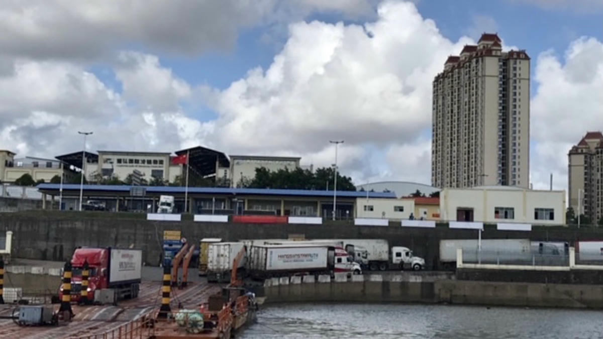 Ngày 14/6, hàng trăm xe container chở hàng xếp kín bãi xe tại Cảng cạn ICD Móng Cái (điểm có cầu phao bắc qua sông Ka Long thông quan hàng hóa sang Trung Quốc).