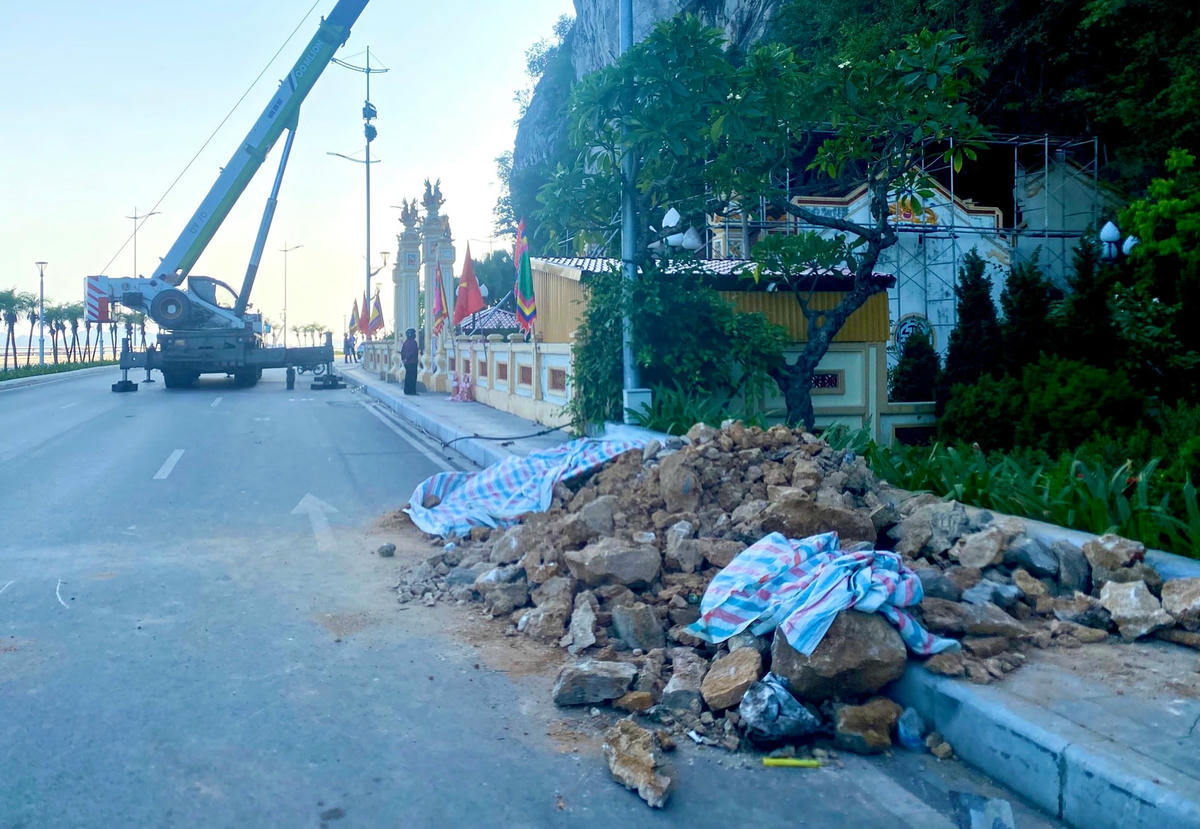 Ngay sau khi đá rơi, UBND phường Bạch Đằng đã báo cáo UBND thành phố và phối hợp với các đơn vị chức năng ghi nhận hiện trạng để có biện pháp giải quyết. Ngày 9/5, UBND TP Hạ Long đã quyết định tạm đóng cửa khu vực mái che bài thơ cổ để lên phương án thi công và ngày 26/5. Thành phố cũng đã có thông báo tổ chức tạm phân luồng giao thông đoạn đường ven biển đi qua khu vực này để tiến hành khắc phục tình trạng đá rơi trên núi.
