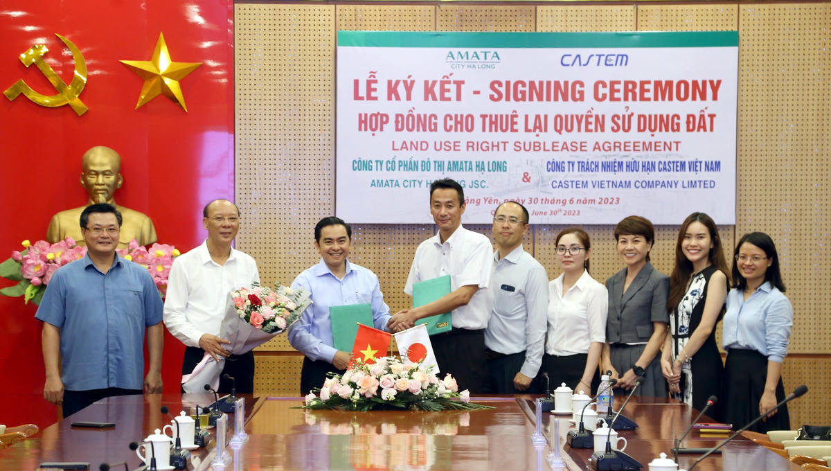 Chiều 30/6, Công ty CP Đô thị Amata Hạ Long và Công ty TNHH Castem Việt Nam đã ký kết hợp đồng cho thuê lại quyền sử dụng đất để triển khai dự án đầu tư tại KCN Sông Khoai (TX Quảng Yên, Quảng Ninh).