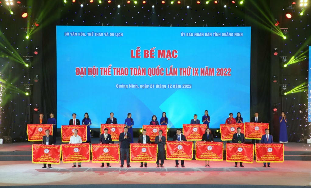 Tại Lễ bế mạc Đại hội, Bộ trưởng Bộ Văn hóa, Thể thao và Du lịch đã tặng thưởng Cờ cho 15 tập thể đã có thành tích xuất sắc nhất tại Đại hội Thể thao toàn quốc lần thứ IX năm 2022, 15 địa phương có thành tích xuất sắc trong công tác tổ chức Đại hội Thể dục thể thao các cấp. Đại hội kỳ tới sẽ được TP Hồ Chí Minh đăng cai tổ chức vào năm 2026.