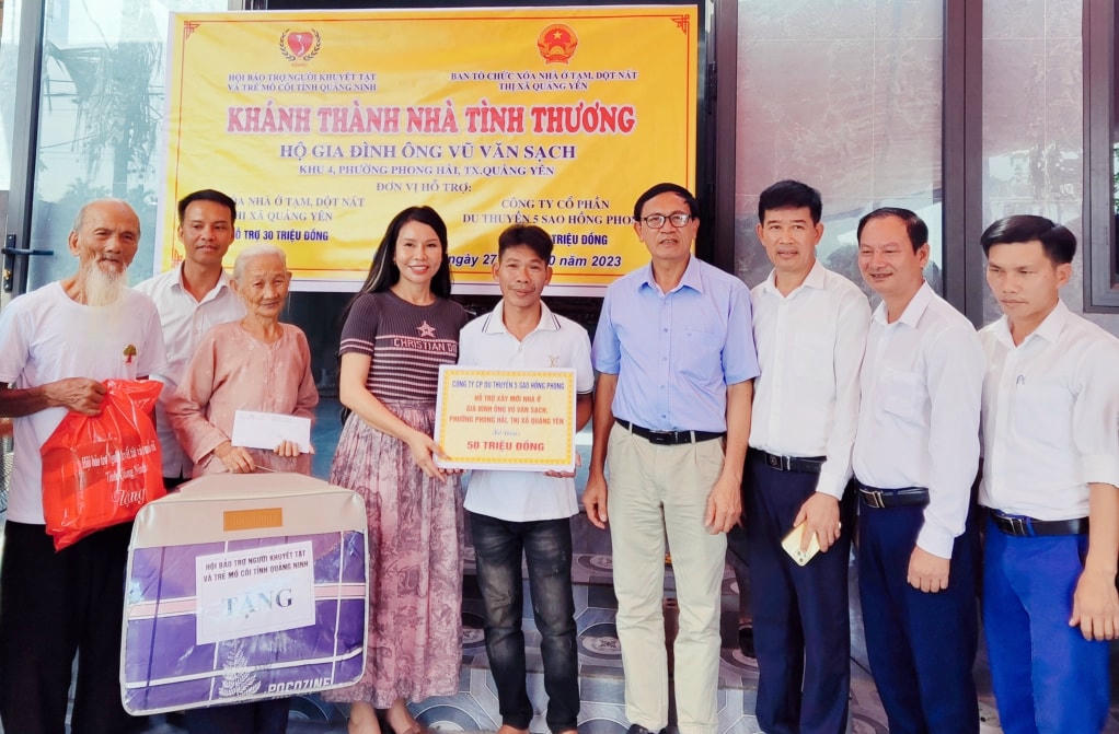 Tại lễ khánh thành, lãnh đạo Hội Bảo trợ Người khuyết tậ và Trẻ mồ côi tỉnh, lãnh đạo TX Quảng Yên và các nhà hảo tâm đã khánh thành nhà tình thương cho 3 hộ gia đình, gồm: Hộ ông Lê Tiến Thiết 71 tuổi và hộ bà Cao Thị Doan 49 tuổi, cùng ở xã Liên Vị; hộ ông Vũ Văn Sạch 45 tuổi, ở phường Phong Hải (TX Quảng Yên).