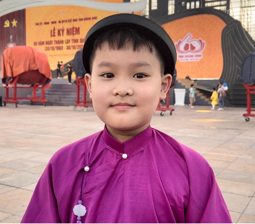 Em Trần Hùng Anh (học sinh lớp 4A4, trường Tiểu học Quang Trung, TP Hạ Long): Em cảm thấy rất vui và hào hứng khi được tham gia Lễ kỷ niệm 60 năm Ngày thành lập tỉnh Quảng Ninh. Thông qua chương trình đã giúp chúng em hiểu rõ hơn về truyền thống, quá trình 60 năm xây dựng và phát triển của quê hương. Chúng em cảm thấy rất tự hào khi được đóng góp công sức nhỏ bé của mình trong sự thành công của chương trình. Chúng em hứa sẽ phấn đấu hơn nữa trong học tập để góp phần xây dựng tỉnh Quảng Ninh giàu đẹp, văn minh, hiện đại.