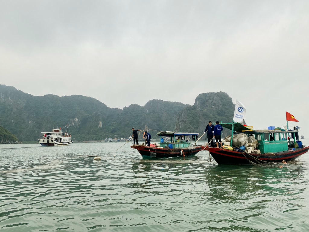 Hôm nay (24/3), Ban Quản lý Vịnh Hạ Long đã huy động trên 20 tàu, xuồng, đò và gần 100 người tổ chức ra quân thu gom phao xốp trên vịnh Hạ Long.