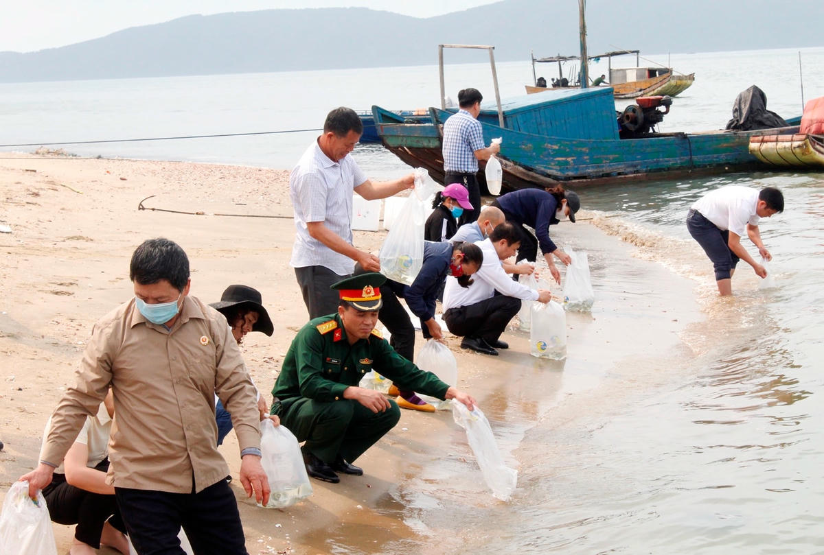 Quảng Ninh: Thả gần 500 nghìn con tôm, cá giống
