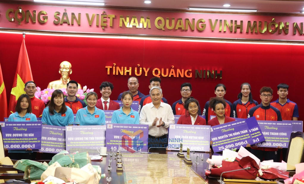 Tại buổi gặp mặt, tuyên dương HLV, VĐV Quảng Ninh đạt thành tích cao tại SEA Games 32, tỉnh Quảng Ninh và Tập đoàn Công nghiệp Than - Khoáng sản Việt Nam (TKV) đã khen thưởng 18 cá nhân gồm 6 HLV và 12 VĐV với mức thưởng cao nhất hiện nay được áp dụng như quốc gia, tổng số tiền thưởng hơn 1,3 tỷ đồng.