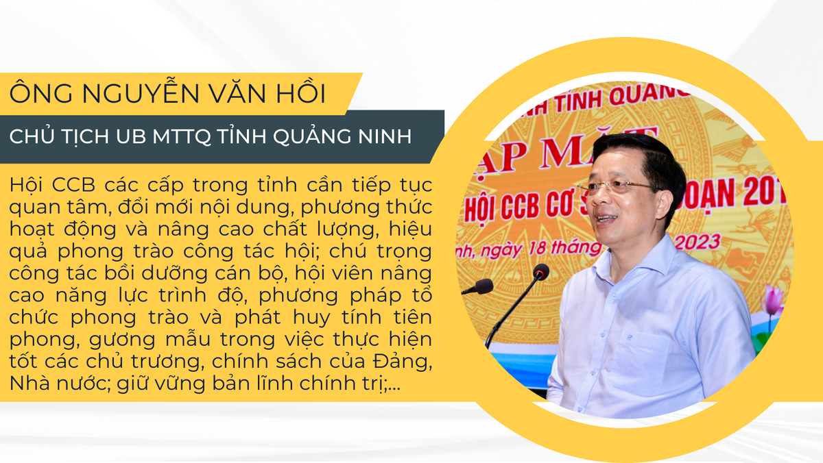Phát huy truyền thống, phẩm chất “Bộ đội Cụ Hồ”, những năm qua, Hội CCB các cấp tỉnh Quảng Ninh luôn coi trọng công tác xây dựng Hội vững mạnh toàn diện, cổ vũ tinh thần đoàn kết, thi đua sôi nổi trong cán bộ, hội viên.