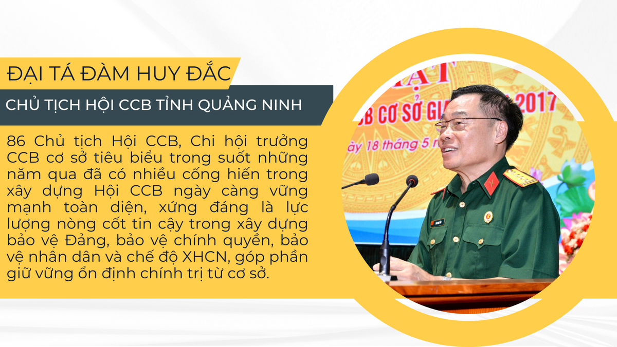 Nổi bật trong đó là 86 Chủ tịch Hội CCB, Chi hội trưởng CCB cơ sở tiêu biểu được biểu dương tại Hội nghị ngày hôm nay. Đây là những tấm gương sáng, năng động, sáng tạo trong tổ chức cho hội CCB cơ sở thực hiện thắng lợi mọi nhiệm vụ, góp phần đắc lực vào sự phát trển KT-XH của địa phương. Qua đó, góp phần khẳng định vai trò của tổ chức Hội CCB trong thời kỳ mới, đoàn kết xây dựng quê hương Quảng Ninh ngày càng phát triển nhanh và vững chắc.