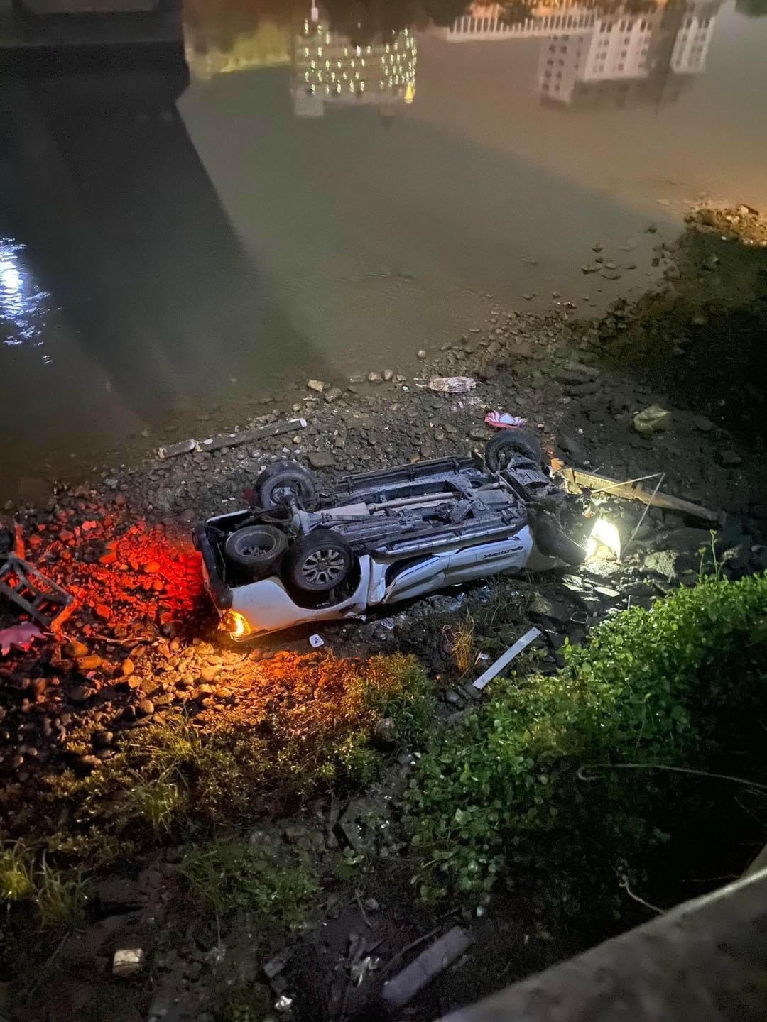 Quảng Ninh: Xe bán tải đâm đổ lan can cầu, lao xuống sông khiến 3 người thương vong