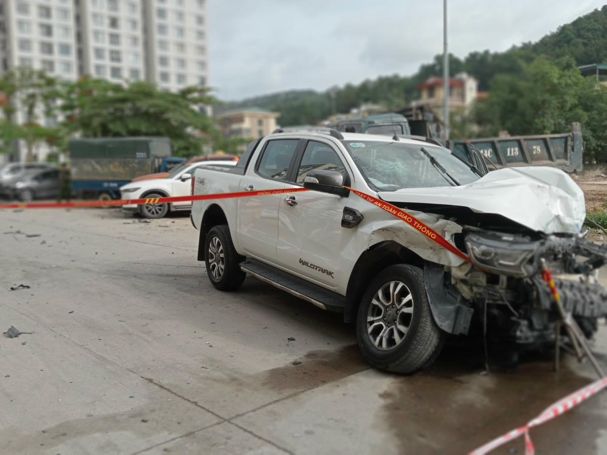 Quảng Ninh: Xe bán tải đâm hỏng hàng loạt xe ô tô đỗ bên đường