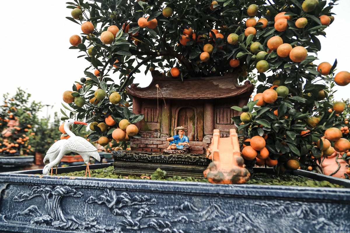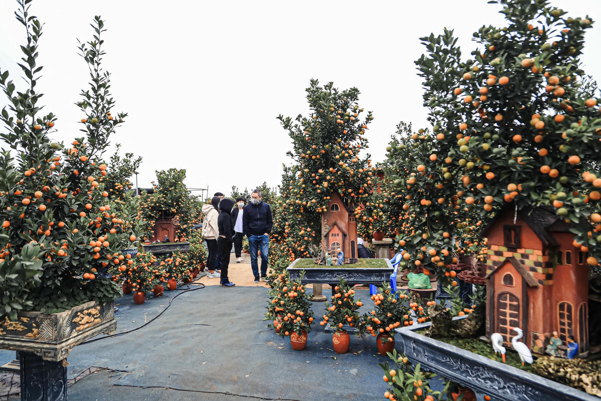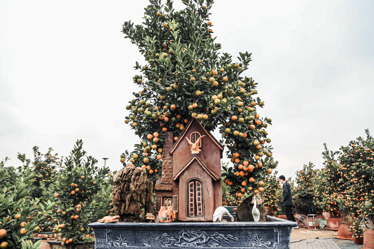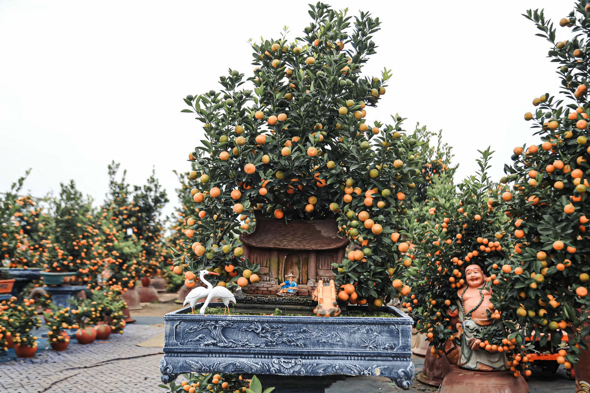 Lâu nay, nhắc đến quất cảnh là nhắc Làng quất cảnh Tứ Liên (phường Tứ Liên, quận Tây Hồ, Hà Nội). Theo đó, ngoài hoa đào, hoa mai, quất cảnh cũng được nhiều người lựa chọn để trang trí vào dịp Tết.Vài năm trở lại đây, nhiều chủ vườn đã sáng tạo các kiểu dáng khác nhau, theo chủ đề linh vật của từng năm. Do vậy, giá của mỗi cây quất thế, quất bonsai có giá trị cao hơn quất trồng theo kiểu truyền thống.Chị Linh chủ vườn quất Lực Hương chia sẻ, nhằm thu hút khách mua hàng, mấy năm nay nhà vườn chúng tôi đã chuyển sang trồng quất bonsai để bán vào dịp Tết. Tuy nhiên, việc trồng quất bonsai phải mất nhiều thời gian chăm sóc, tạo thế, dáng tỉ mỉ cho nên giá mỗi cây cũng cao hơn so với quất truyền thống.“Giá của chậu quất cảnh nhỏ được bán ngay tại vườn ở Tứ Liên ở thời điểm này giao động từ 3-5 triệu đồng; chậu to và "khủng" giá thành rơi khoảng 5- 20 triệu đồng”, chị Linh cho biết thêm.Mỗi chậu quất bonsai đều được nhà vườn bày trí đẹp mắt.Nắm bắt xu hướng của người tiêu dùng, bên cạnh dòng quất bình, quất bonsai các nhà vườn cũng đã ươm trồng thêm những dòng quất nghệ thuật được tạo dáng đẹp.Chị Lê Thị Thủy (Hoàng Mai, Hà Nội) người mua quất cho hay, thay vì mua quất ngoài chợ thì hầu hết năm nào tôi cũng bớt thời gian đi lựa chọn quất tại các vườn lớn để có giá thành hợp lý và nhiều lựa chọn hơn. Tiêu chí lựa chọn của tôi cũng khá đơn giản miễn cây có lộc, lá, quả xanh, quả chín…Hiện nay, các loại quất bonsai được khách hàng lựa chọn nhiều, tiếp đến là những cây được tạo dáng và đánh quất vào lọ, chum nhỏ. Xu hướng người tiêu dùng cũng thích những cây bonsai nhỏ nhắn mà trĩu quả, không chiếm dụng nhiều không gian nhưng vẫn tạo được không khí Tết ấm cúng.Hầu hết, các chậu quất bonsai đều được khắc họa những hình ảnh gần gũi gắn liền với làng quê Việt Nam. Bởi vậy, những chậu quất bonsai này có lượng tiêu thụ lớn hơn so với quất truyền thống.