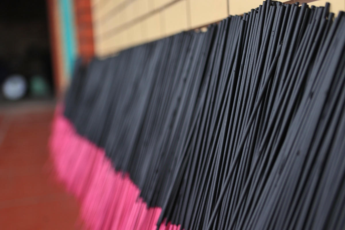 Làng Chóa thuộc xã Dũng Liệt, huyện Yên Phong, tỉnh Bắc Ninh, nổi tiếng với nghề làm hương đen với mùi thơm đặc trưng hiếm nơi nào có được.Theo nhiều người làm hương ở trong làng Chóa, nghề làm hương đen có từ hàng trăm năm.Nguyên liệu chính để làm nên những cây hương đen là sử dụng nhựa trám, than hoa, nứa.Bởi vậy, mà mùi thơm đặc trưng của hương đen làng Chóa chẳng nơi đâu có được.Theo bà Ngô Thị Bẩy người dân làng Chóa cho biết, để tạo nên nhưng cây hương đạt chuẩn thì khâu chọn nguyên liệu là bước vô cùng quan trọng, phải được lựa chọn kỹ càng. Nhựa trám phải được lấy từ Cao Bằng, than hoa không được phép dính tạp chất. Cũng theo bà Bẩy, nứa phải được ngâm khoảng 3 tháng rồi mới được vót thành que hương và đem phơi khô dưới nắng.“Khâu trộn nguyên liệu là công đoạn quyết định một phần lớn việc tạo nên hương thơm khác biệt cho loại hương đen đặc trưng của làng Chóa. Nhựa trám được đun sôi trộn cùng với than hoa từ cây gỗ bạch đàn đã được loại bỏ sạch tạp chất sau đó cho hỗn hợp nhựa trám với than hoa vào máy nghiền tạo độ mịn dẻo”, bà Bẩy cho hay.Cũng theo bà Bẩy, công đoạn se hương được làm bằng tay, yêu cầu độ tỷ mỷ cao nên số lượng hương của một hộ gia đình trung bình chỉ rơi vào khoảng 400 đến 500 que mỗi ngày. Ngày nay, người dân tự nghiên cứu và cho ra đời chiếc máy se hương, giúp năng suất tăng lên hàng chục lần.Hình ảnh những que hương hoàn thành. Đặc biệt, hương đen làng Chóa có thể để vài năm vẫn giữ được mùi thơm.Tùy từng loại hương mà có giá khác nhau, từ 20.000 đồng - 400.000 đồng/100 que hương.