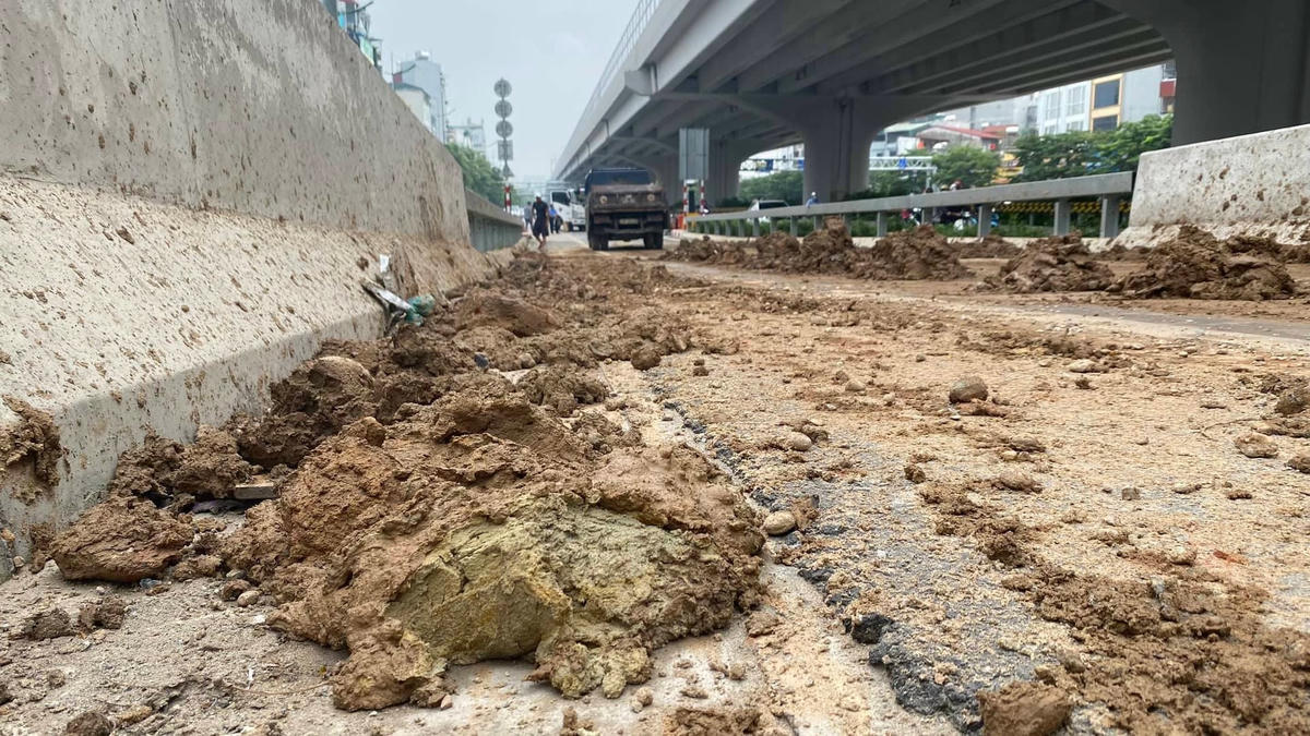 Theo một số người dân, sáng ngày 8/6, ram lên xuống Vành đai 3 đối diện số 334 Phạm Văn Đồng hướng cầu Thăng Long đi Mỹ Đình bị che kín bởi lớp đất, đá dài hàng trăm mét. Xe ô tô không thể di chuyển qua khu vực này.Đại diện đội CSGT số 6 (Công an TP Hà Nội) cho biết: “Nhận được tin báo, đơn vị đã nhanh chóng bố trí lực lượng, huy động phương tiện phối hợp với các lực lượng chức năng liên quan để khẩn trương phân luồng giao thông, dọn số đất đá trên, trả lại đường đi cho người dân”.Đất đá phủ kín đường kéo dài hàng trăm mét, lực lượng chức năng đang tiến hành dọn dẹp trả lại mặt đường cho xe ô tô lưu thông.Xe tải, máy xúc đã được lực lượng chức năng huy động để vận chuyển đất đá.Hiện lực lượng chức năng đang điều tra, làm rõ phương tiện làm rơi vãi đất đá trên lối ram này.Dự kiến đến đầu giờ chiều, các phương tiện mới có thể tiếp tục di chuyển qua ram lên xuống này.
