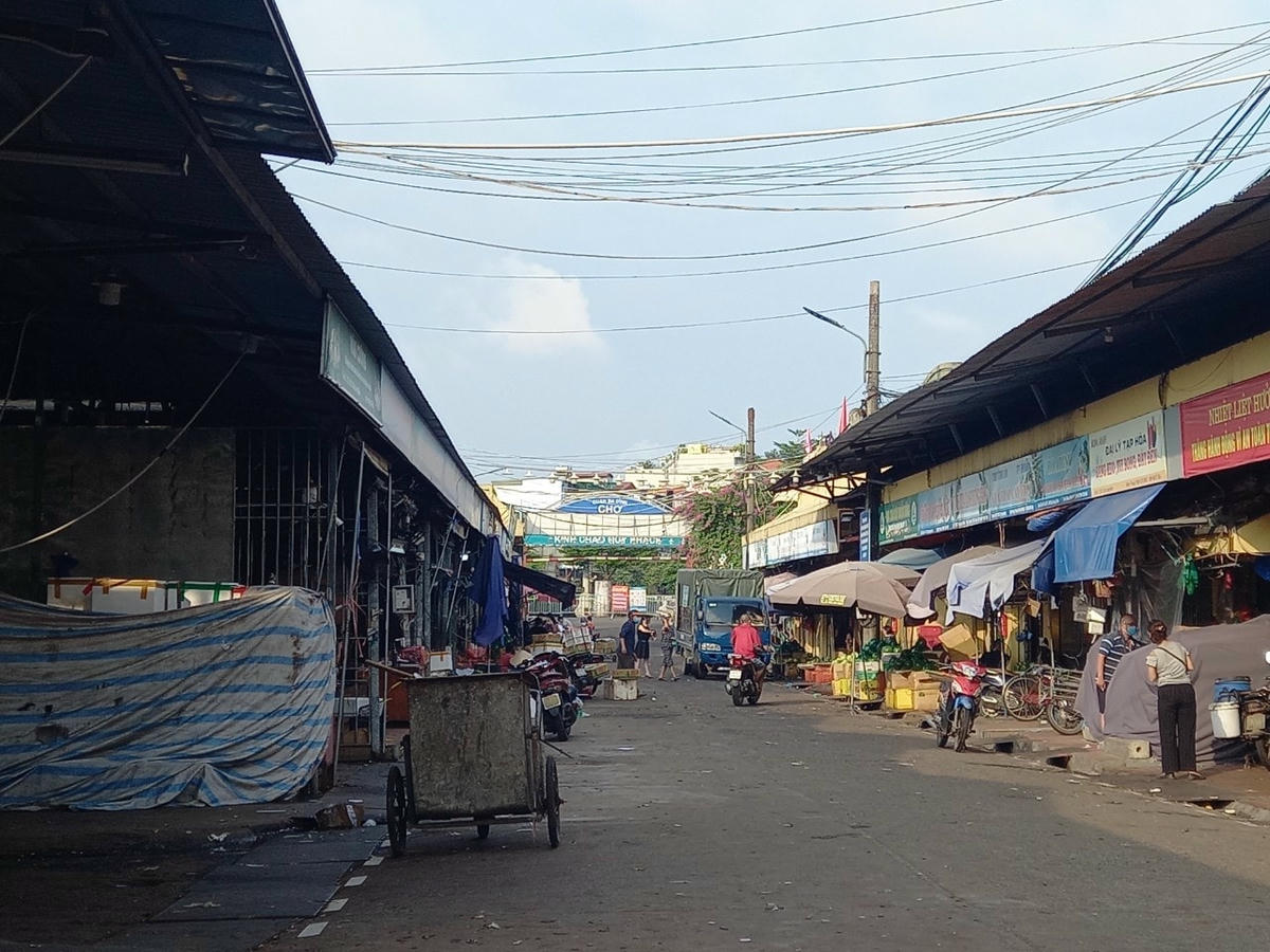 Sáng ngày 2/8, chợ Long Biên vẫn đang được lập hàng rào tại khu vực cổng. Phía bên trong, các hoạt động buôn bán vẫn diễn ra nhưng lượng người vắng vẻ hơn thường ngày. Phía ngoài chợ, khu vực đường đê, một số người dân “vô tư” buôn bán lấn chiếm lòng đường.