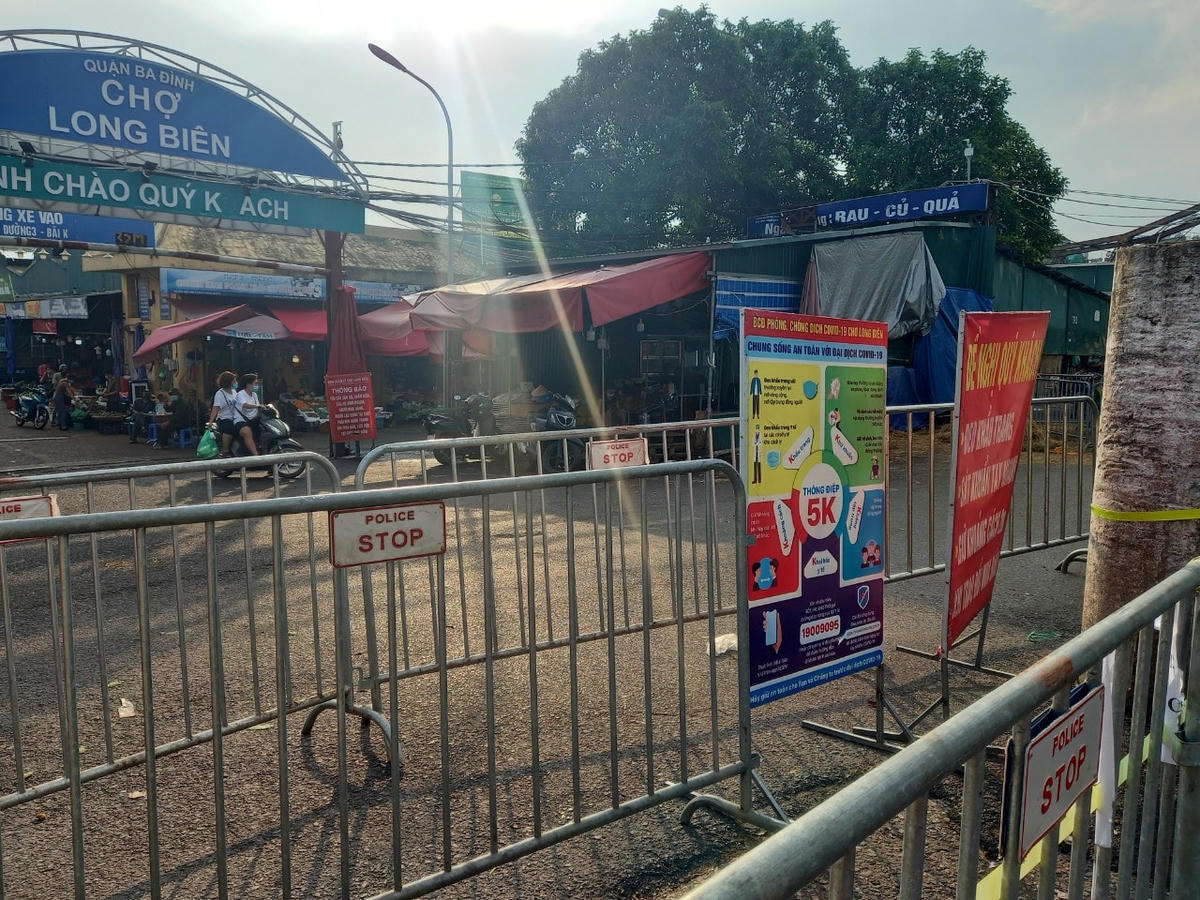 Theo ghi nhận của phóng viên báo Đại Đoàn Kết Online, hiện chợ Long Biên (quận Ba Đình, Hà Nội) đã thực hiện rào chắn tại cổng. Phía ngoài, một số người dân “vô tư” buôn bán dưới lòng đường.