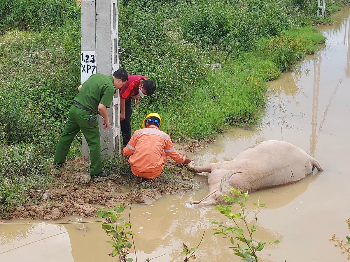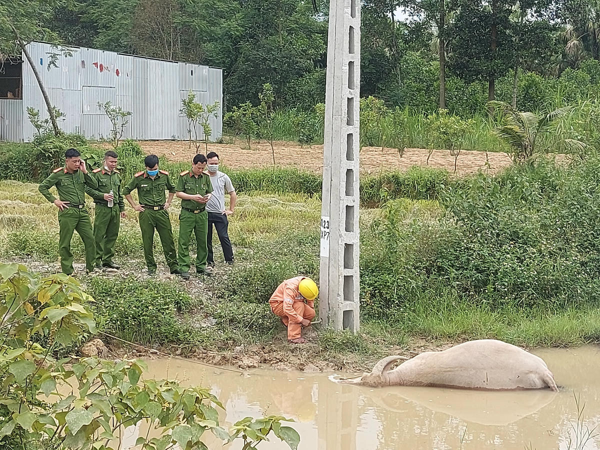 Phát hiện con trâu có khả năng bị giật, ông không chạm vào mà đã báo lên chính quyền và điện lực địa phương. Sau đó, lực lượng Công an và nhân viên ngành điện đã có mặt để xác định nguyên nhân.