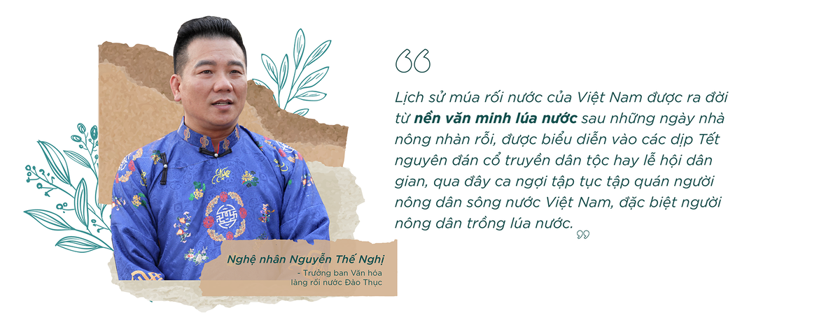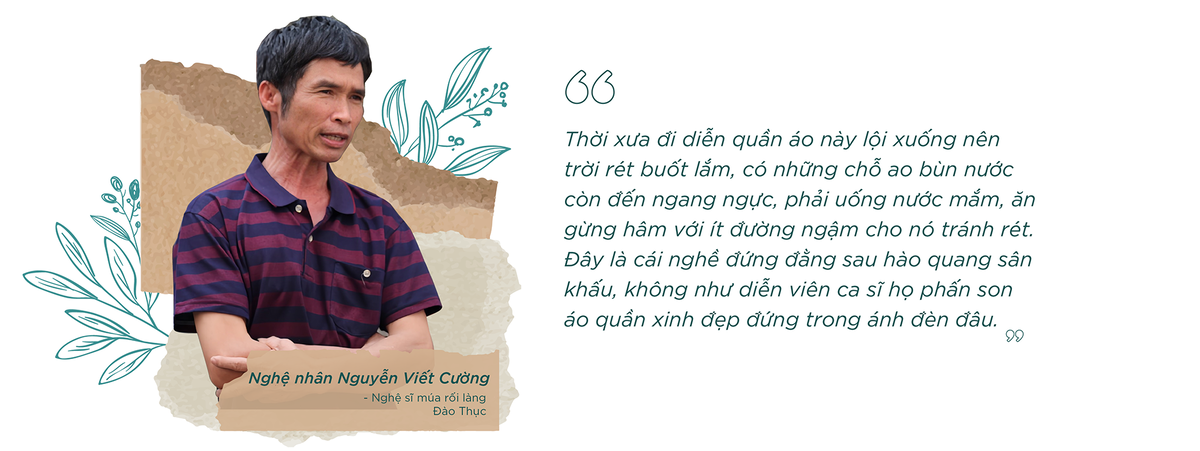 Sự dày công luyện tập, niềm đam mê với nghề diễn rối nước là những yếu tố quan trọng, quyết định đến độ chỉn chu, thú vị của từng sân khấu, từng tích trò mà những nghệ sĩ Đào Thục tạo nên. Song song với nhiệt huyết và tình yêu nghề, người xem mấy ai biết được những nỗ lực đằng sau sân khấu nước của những người nông dân phường rối.