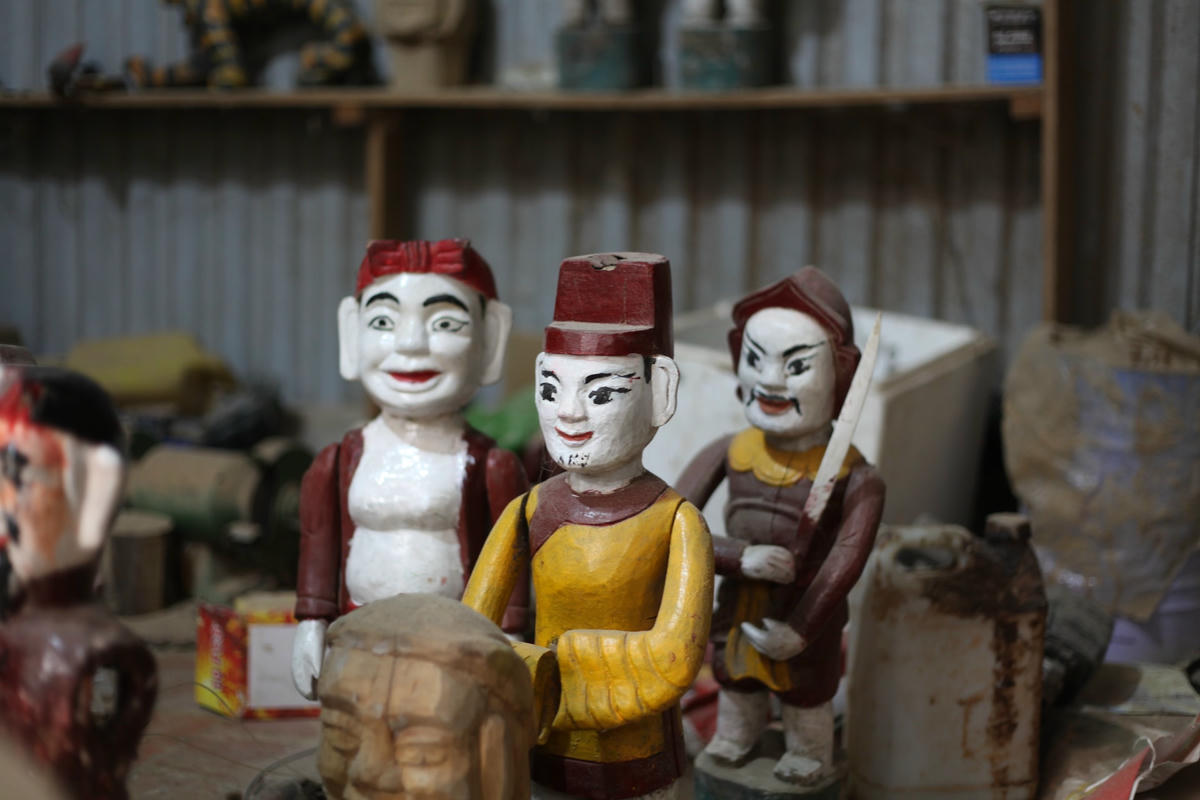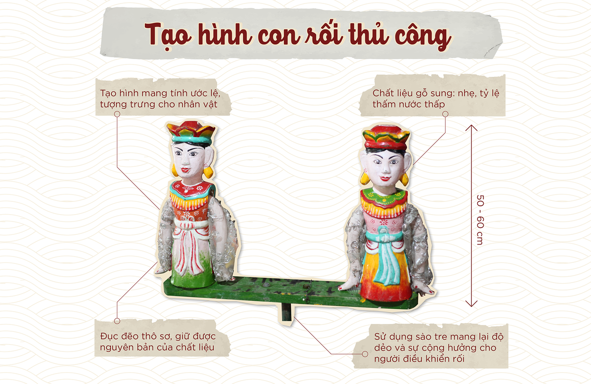 “Chúng ta chỉ nói nhẹ không, thì chẳng ai nói là tài, mình nói được là gỗ này chỉ hút nước 2 có nghĩa là các cụ ngày xưa là giỏi, đã nghiên cứu được là dùng vật liệu nào hợp, không những là tâm linh mà còn được cả chất lượng” - nghệ nhân Nguyễn Văn Phi tự hào khi nói về cách chọn nguyên liệu của ông cha làm nghề rối thời xưa.