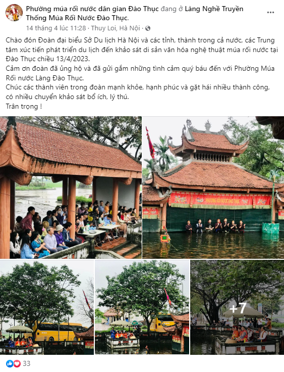Được biểu diễn ở những sân khấu lớn tại Thủ đô, thu hút khách du lịch bằng sự hiện đại ở không gian trình diễn cũng như sự chỉn chu trong những dịch vụ của nhà hát múa rối, song, để có những trải nghiệm thật nhất, truyền thống nhất về loại hình nghệ thuật dưới nước này, thì làng nghề múa rối nước Đào Thục chính là một điểm đến không thể bỏ lỡ của du khách.