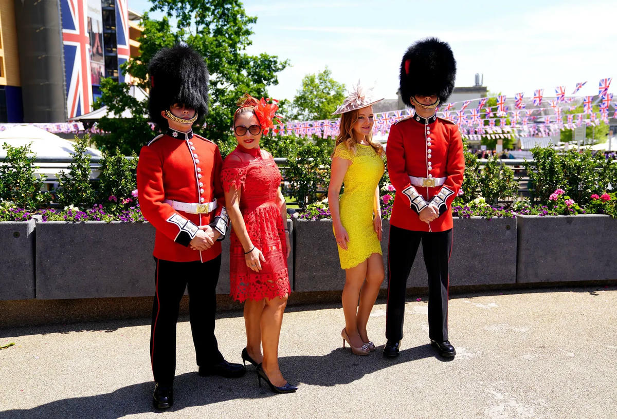 Dẫn đầu lễ diễu hành ngày khai mạc là vợ chồng Thái tử Charles và Camilla. Nữ công tước xứ Cornwall đã chọn một bộ quần áo màu xanh của Anna Valentine, kết hợp cùng chiếc mũ ton-sur-ton của Philip Treacy.Brigitte, Nữ công tước xứ Gloucester (váy màu xanh lam), Công nương Michael xứ Kent và Công tước xứ Gloucester cùng ngồi trên một chiếc xe ngựa.Bá tước Hopetoun Tom Hooper và phu nhân Alexandra Hooper.Công chúa Anne và quý bà William Nunneley.Nữ bá tước xứ Wessex Sophie cùng vợ chồng Thái tử Charles và Camilla theo dõi các cuộc đua ngựa từ khán đài.Ascot Greencoats - Những cảnh vệ đứng chào đón người tham gia đua ngựa.Một nhóm khách tham dự đang hưởng thức một bữa ăn ngoài trời tại bãi đậu xe.Một người phụ nữ tạo dáng với chiếc mũ đọc đáo của mình.Hoàng tử xứ Wales và Nữ công tước xứ Cornwall ngồi trên xe ngựa đi vòng qua bùng binh diễu hành.Các quý cô chọn cùng một phong cách đến tham dự.Khán giả ngồi trên những băng ghế hàn huyên với nhau.Một nhóm người đến xem đua ngựa với "dress code" phong cách Nhật Bản.Nhóm nhạc Fully FunKtional mang đến màn trình diễn mãn nhãn trên sân khấu tại sân chơi Windsor.Vận động viên đua ngựa rời khỏi cổng xuất phát.Khán đài được bao phủ đầy sắc màu bởi trang phục và mũ của khán giả.Mọi người ăn mừng chú ngựa Eldar Eldarov, do David Egan cưỡi, chiến thắng trong cuộc đua Queen's Vase.Saffie Osborne đứng thứ 26 trong Royal Hunt Cup.Các quý cô cùng nâng ly ăn mừng dưới cái nắng mùa hè.2 người phụ nữ đến tham dự cùng chụp ảnh với lính canh.Chiếc mũ với thiết kế ly trà và bó hoa độc đáo.Một vị khán giả với bộ trang phục vô cùng nổi bật.Nhóm quý cô mặc lên mình những bộ trang phục vô cùng rực rỡ, cùng dắt tay nhau đi xem đua ngựa.