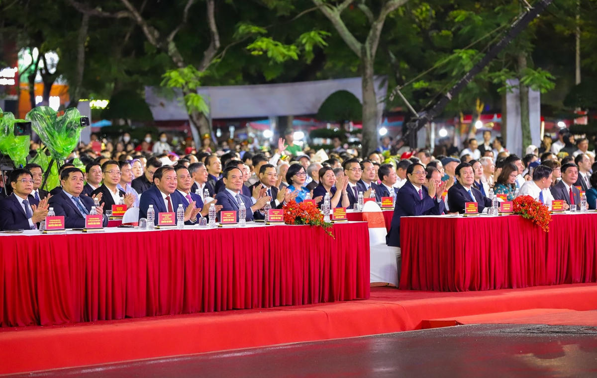 Khép lại Đêm hội, các đại biểu cùng nhân dân và du khách còn được chiêm ngưỡng màn bắn pháo hoa hoành tráng, rực rỡ ghi dấu khó quên trong lòng người xem.